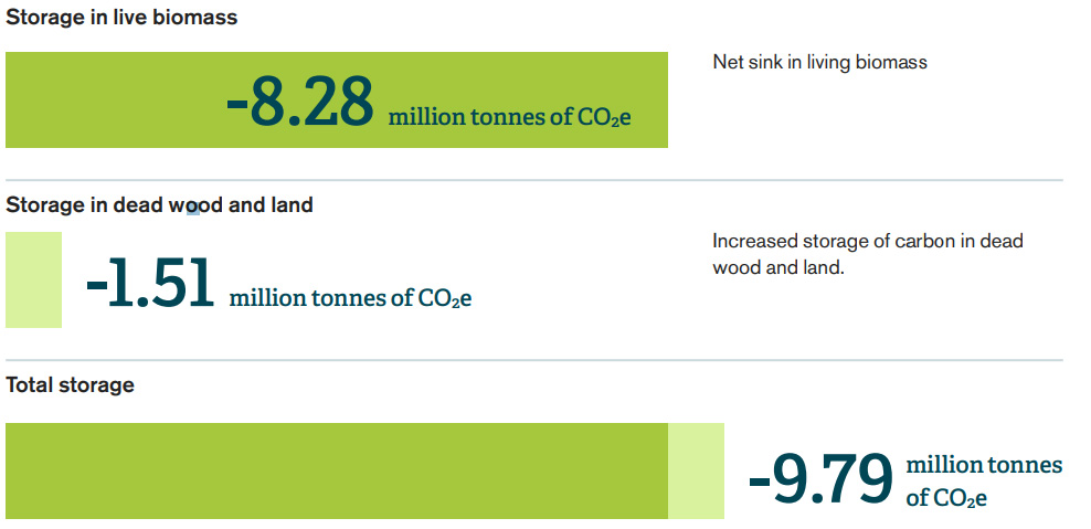 Sveaskog’s land holdings contribute to climate benefits through net carbon storage, both directly in the forest and indirectly through long-term products made from timber from Sveaskog’s land. In addition, wood-based products – both long-lived and shortlived – can lead to reduced use of fossil energy and fossil materials, which also helps to reduce the climate impact of society. The calculation of Sveaskog’s carbon capture is based on the annual national reporting that the Swedish Environmental Protection Agency compiles for the UNFCCC in the Swedish National Inventory Report. The national method, which follows the IPCC guidelines for national reporting, is well established and, due to the size and spread of Sveaskog’s holdings, can be considered representative.