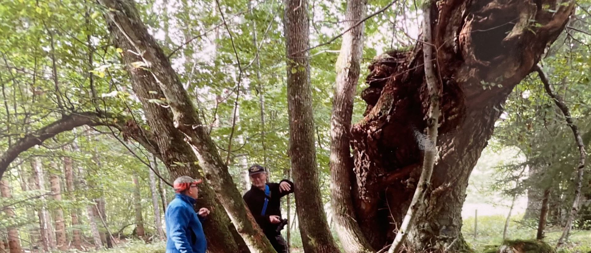 Per Petersson och Dag Ekman diskuterar restaureringen av en mycket gammal lind på Kringstorp. Foto: StenOlof af Geijerstam
