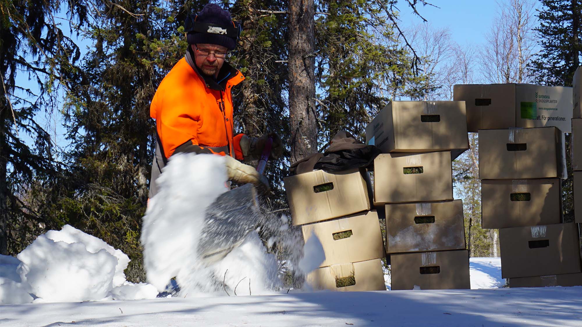 - Snön erbjuder en farbar väg fram och fungerar också som ett naturligt kylelement som håller plantorna frusna tills det är dags för plantering, säger Stefan Edström som är distributionsansvarig vid SSP i Norrbotten.