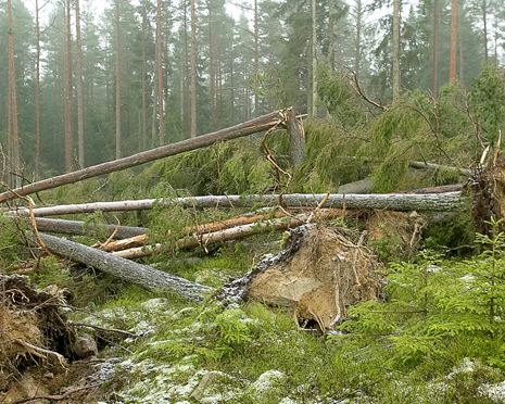 Ovädret drog förbi på en kvart men lämnade omfattande skador. Skogsstyrelsens bedömning är att närmare 1 miljon kubikmeter har blåst ner, en bedömning som Sveaskog delar. På Sveaskogs mark drabbades 3 500 hektar av omfattande skador och på 3 500 hektar har skogen i olika grad drabbats. Sveaskog är den stora markägaren i området men skadorna hos privata skogsägare är ungefär av samma omfattning.