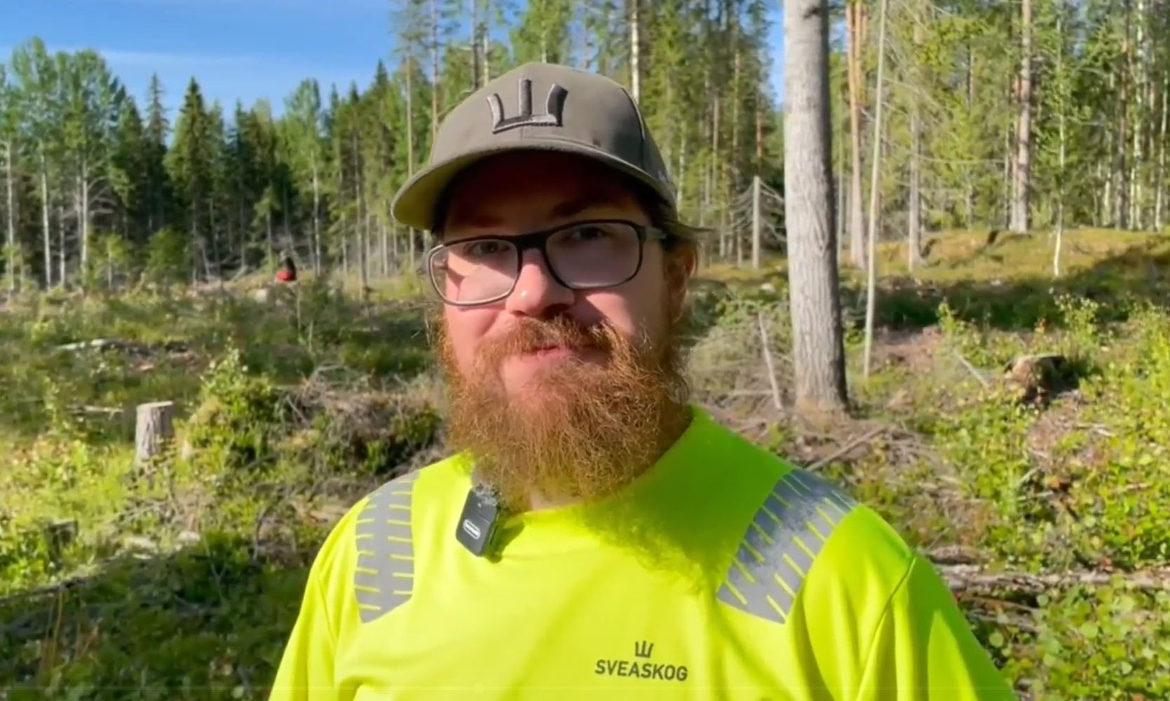 - Jag är nyss examinerad från Skogskandidatprogrammet på Linnéuniversitet och det här är en bra ingång för mig i skogsbranschen och på Sveaskog. Jag har jobbat åtta år på kontor och att nu få jobba utomhus i skogen är en lyx, säger Robin.