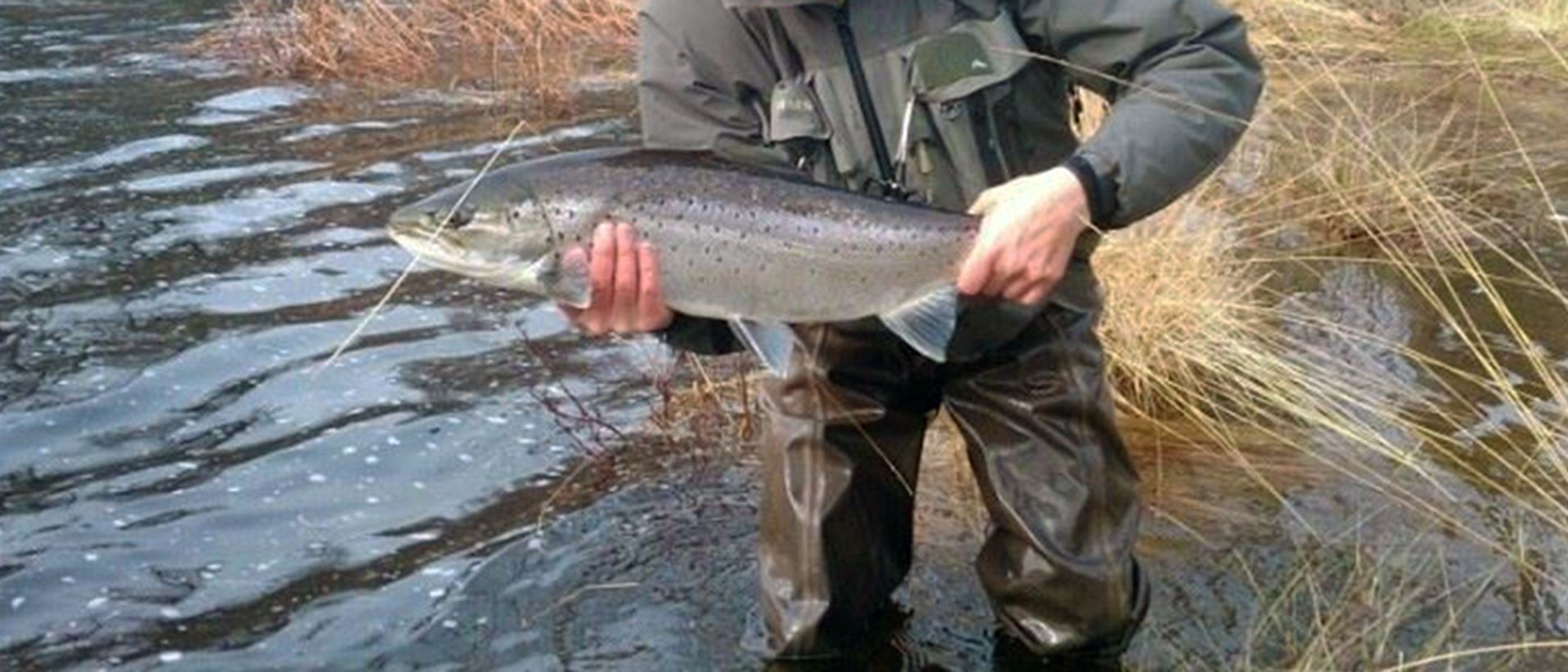 På fiskesträckan fångas det både övervintrad och nystigen havsöring men även lax. Utrustningen som vi rekommenderar är ett kortare tvåhandsspö runt 11–12 fot # 7-8 eller ett enhandsspö runt 9-10 fot # 7-8. Ofta behövs det en snabbsjukande klump, där densiteten varierar beroende på vattenföringen, allt från flyt/sjunk 3 ner till hel klump i sjunk 5/6.