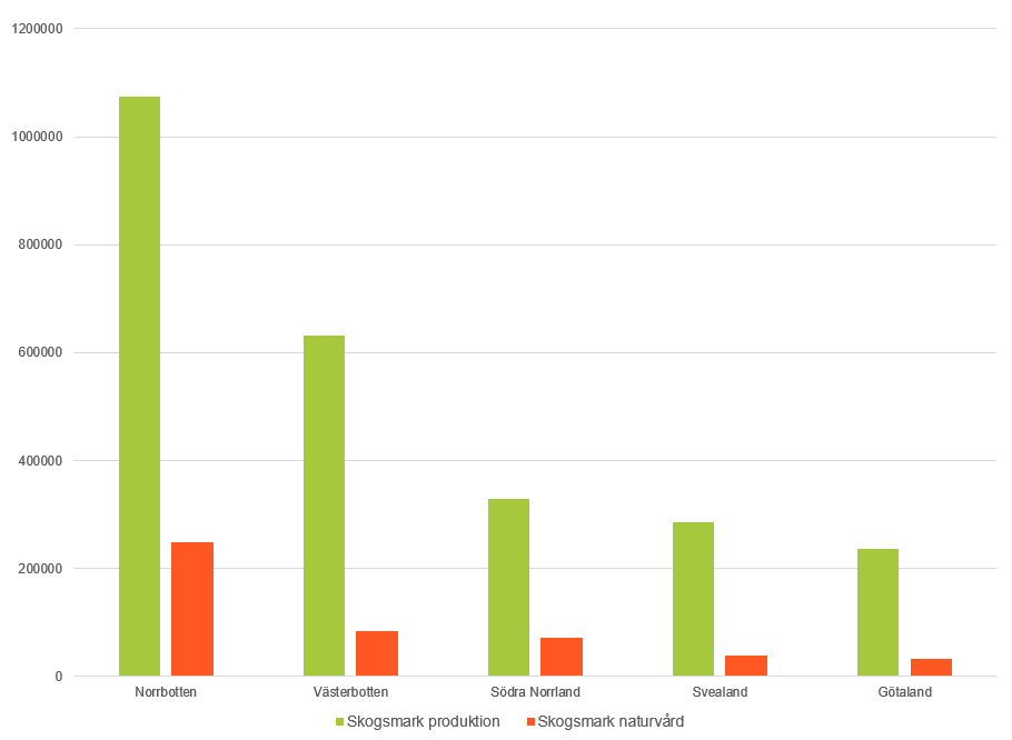 - Sveaskog har 270 067 hektar produktiv skogsmark i Götaland. Av dessa är 33 358 hektar skogar med höga naturvärden som inte brukas.
