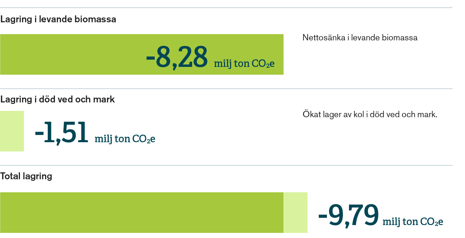 Sveaskog skogar växer årligen mer än vad bolaget avverkar. Det innebär att klimatnyttan i form av lagret av inbunden kol i stående skog, död ved och mark ständigt ökar.