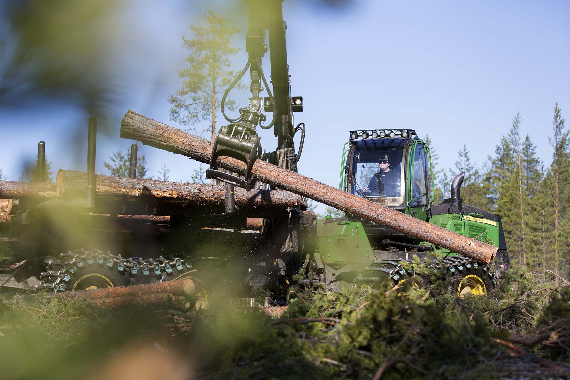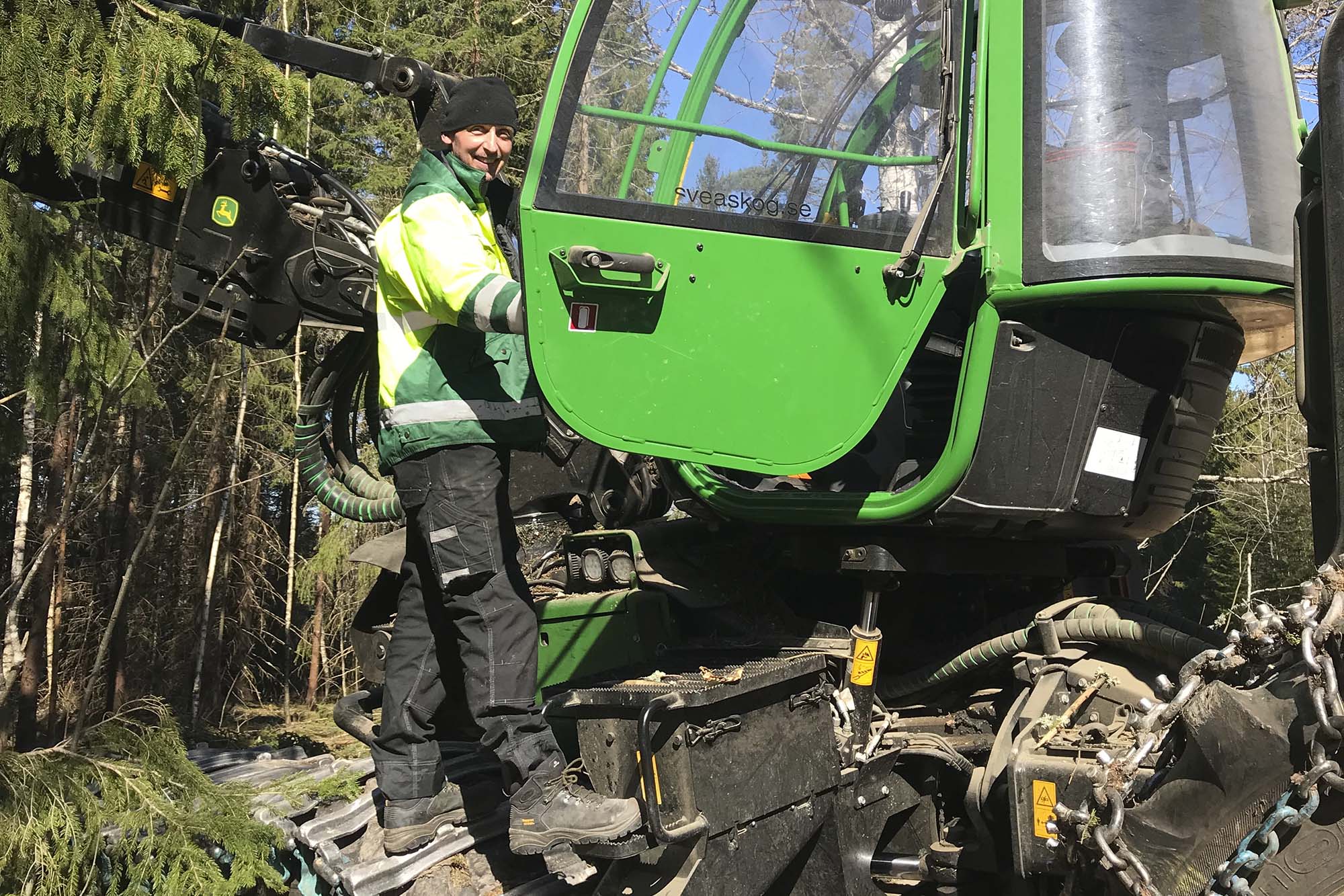 - Det är roligt att det går bra. Man försöker att göra ett så bra resultat som möjligt, men kan samtidigt inte mäta hur mycket som helst, säger Johan Fredrik Söderlöf som är skördarförare.