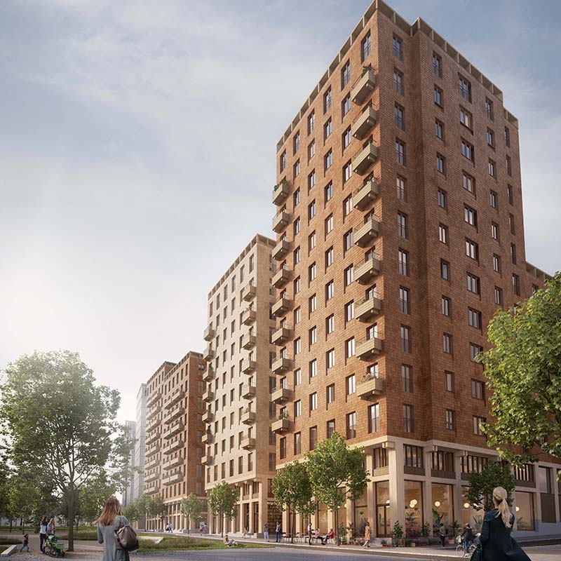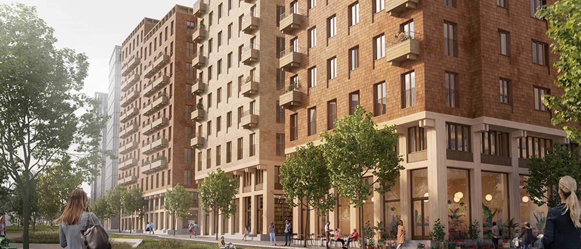 - Med sina 234 lägenheter, fyra byggnader om 10-13 våningar är det ett av världens största bostadshusprojekt i trä.