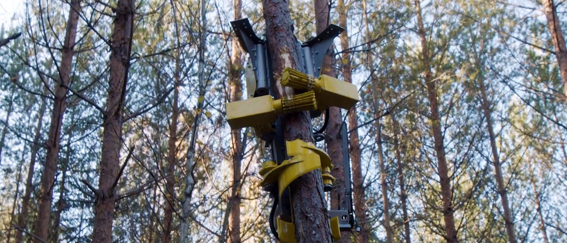 Ett träd i taget direkt från luften ska skogen kunna gallras med hjälp av AirForestrys nya drönarteknik. Den eldrivna drönaren bär med sig ett skördeverktyg som tar tag i toppen på trädet, kramar om det och kvistar trädet uppifrån och ner innan det sågar av stammen och lyfter den till närmaste uppläggningsplats.