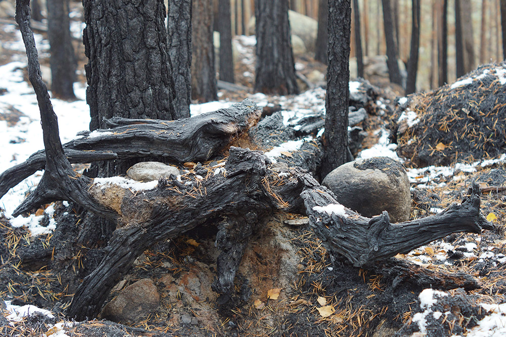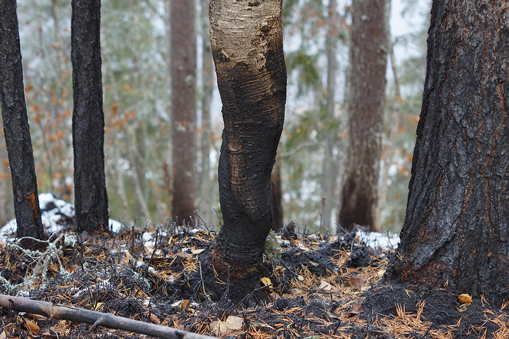 I Ekopark Käringberget, i Västerbotten, har det nyligen genomförts en naturvårdsbränning med målet att bevara och utveckla ekoparkens biologiska mångfald. Daniella Anderson går ledigt och raskt över brunna stubbar och svedda träd som ligger över stigarna på marken. Vi andra blir lätt andfådda. Med energi i blick och röst berättar hon levande om miljöerna vi passerar.