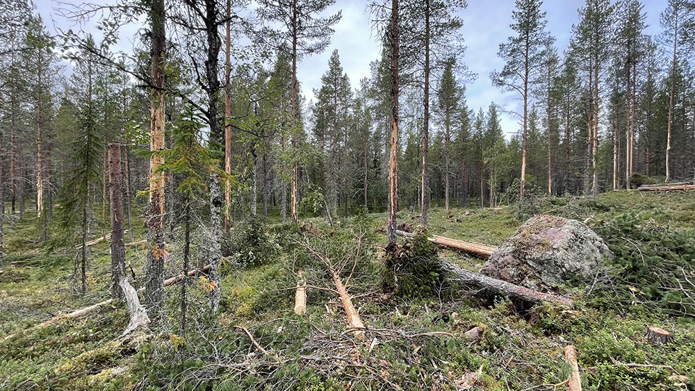 - Vi tror att det kan skynda på bildning av de substrat vi vill ha, men det är på försöksstadiet. I år är första gången vi gör det i större skala, i Ekopark Fjätälven. En skogsmaskin tog upp luckor, ringbarkade och skadade träd. I ett annat område genomfördes arbete manuellt. Totalt handlar det om en insats på 55 - 60 hektar. Vi fick ett litet virkesuttag, men behöll givetvis den döda ved som behövs för naturvården, berättar Jonas Björklund och avslutar:
