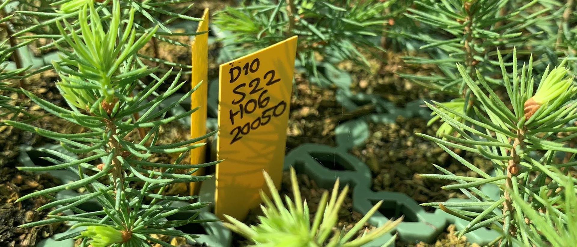 Noggrant uppmärkta granplantor på Lugnets plantskola.