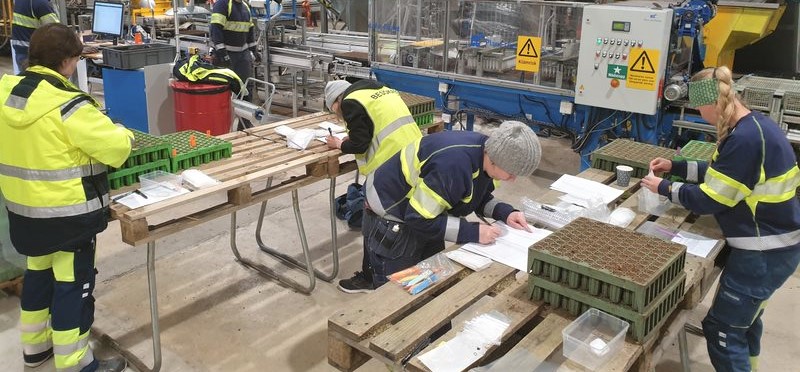 - Det rör sig om ett par tusen granfrön som vi har handsått för att vi ska veta exakt vilket frö som ligger i varje kassett. Sedan har vi skött om dem och sett till så att de växt till sig. Från nästa år ska de odlas vidare på Sveriges Lantbruksuniversitet (SLU) och smittas med rotröta.
