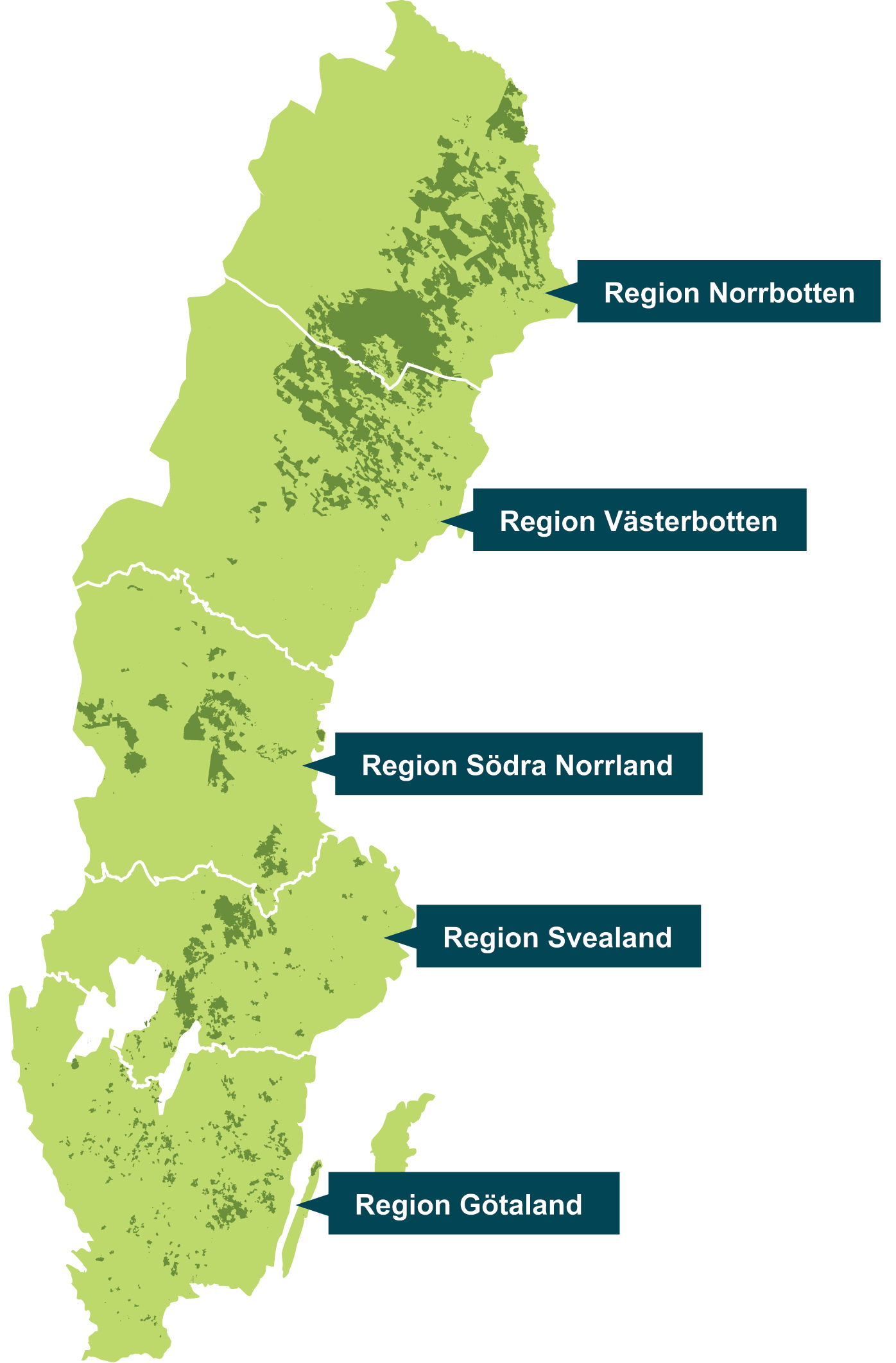 | Region Götaland | Region Svealand | Region Södra Norrland | Region Västerbotten | Region Norrbotten | |