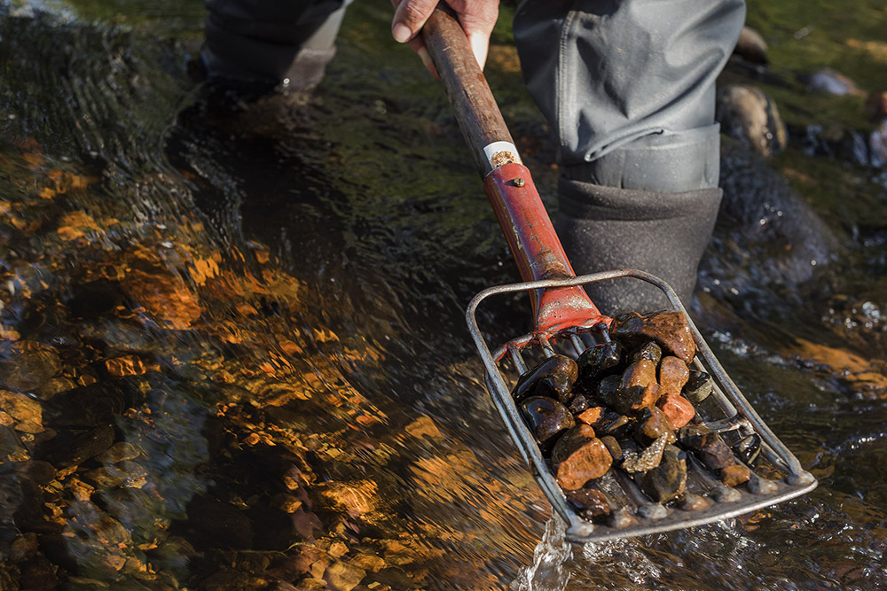 Det är tidskrävande, men nödvändigt för att få bra resultat. Sedan följer mycket tungt arbete med att jobba igenom lagren av sten, grus och fint sediment som kan vara packat hårt som betong. Ibland kan en grävmaskin göra grovjobbet, men i mindre bäckar och känsliga miljöer är det handredskap och svett som gäller.