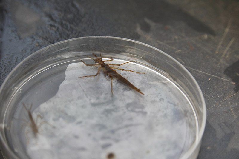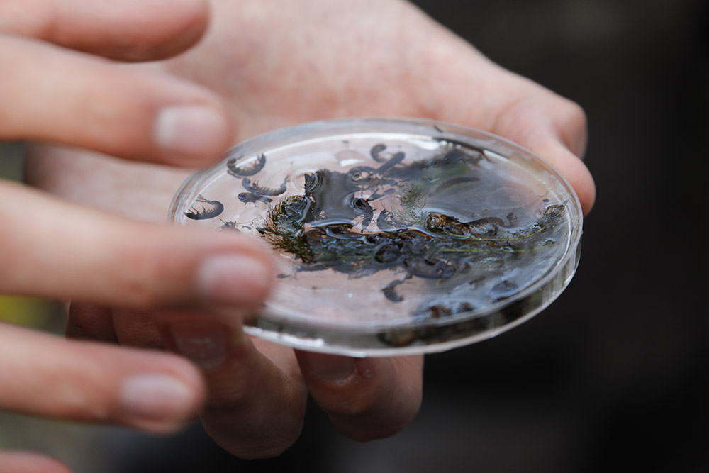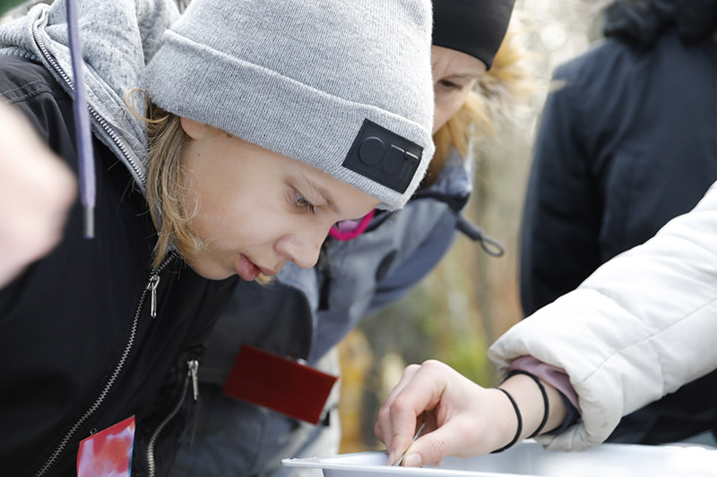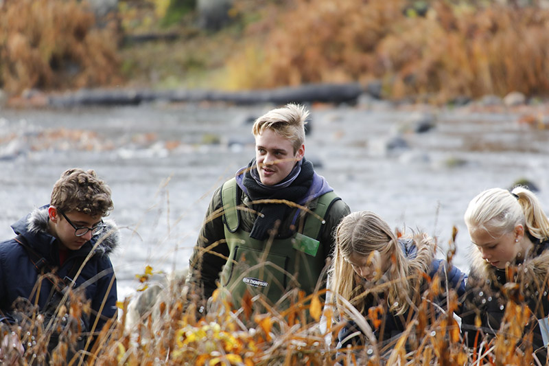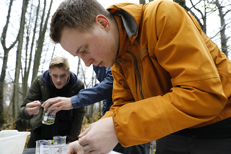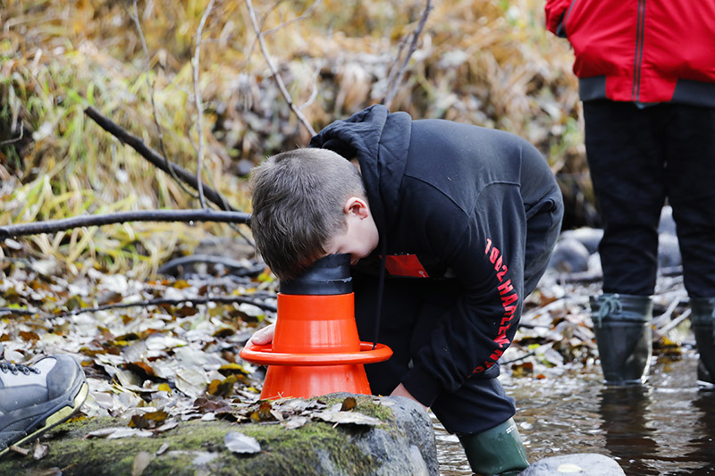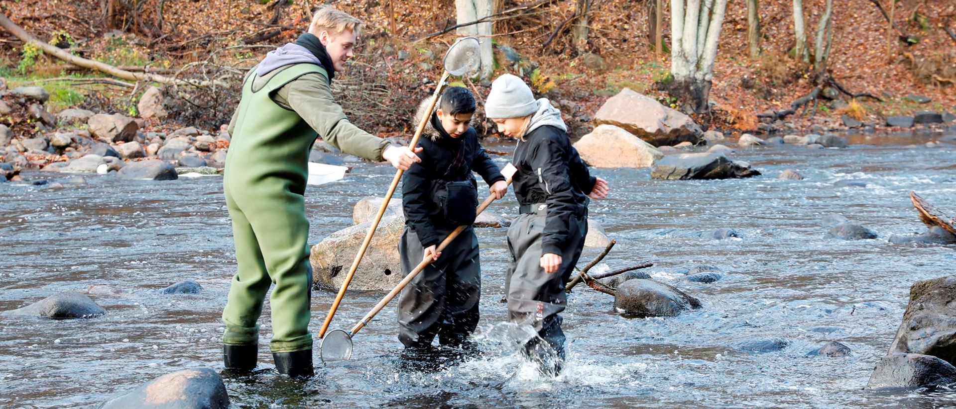 Iklädda vadarbyxor och med vattenkikare i hand får ungdomar i Mörrumstrakten lära sig mer om livet i vattnet. Den praktiska utbildningen är en del i Sveaskogs satsning på kunskapsdelning.