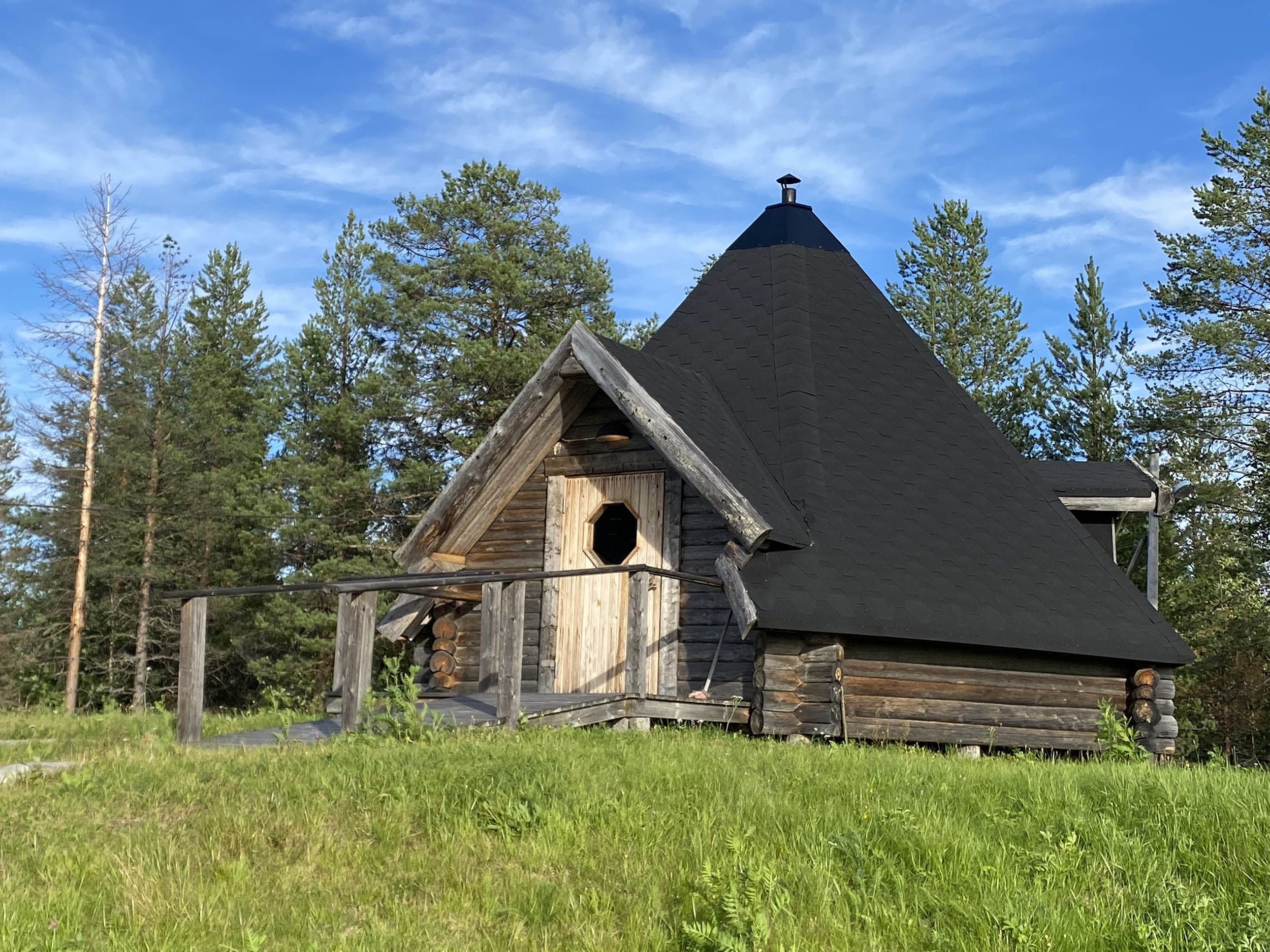 150 mil hemifrån kom vi fram till vår utgångspunkt, Aapua Byakraft, en torsdagseftermiddag i mitten av augusti. Just den här dagen visade det sig att det bara var vi som skulle sova över i stugbyn vilket ledde till att vi hade förmånen att få välja stuga. För oss blev valet lika enkelt som självklart – Norrskenskojan!