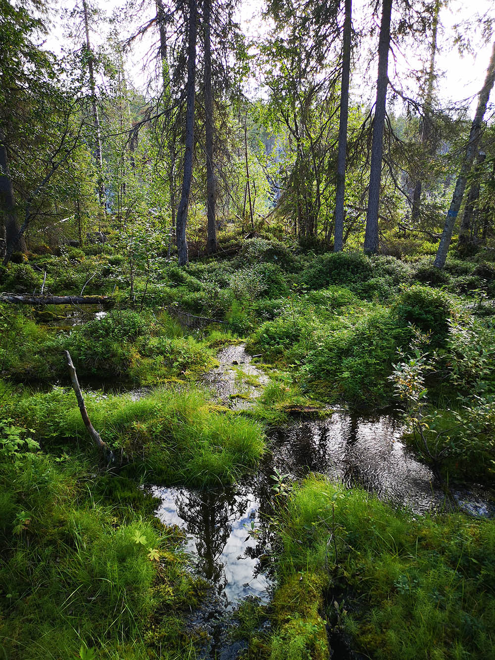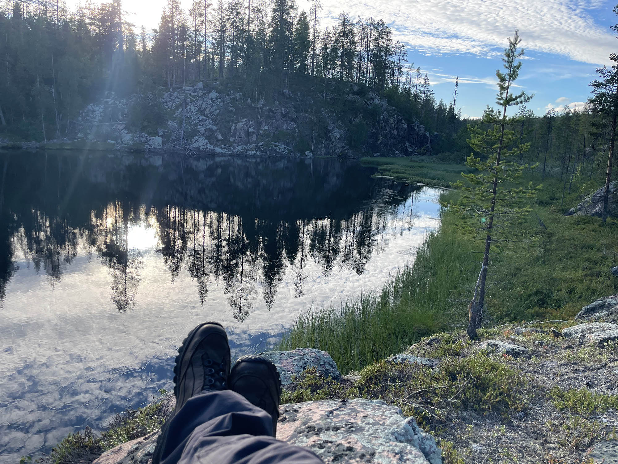 Lompolo var nog en av våra favoriter längs vandringen, och vi önskade att vi haft med kanoten för att utforska Kihlankikursu från nära håll. Vi hittade en kallkälla där vi kunde släcka törsten innan vi fortsatte vidare. Vädret var väldigt fint och vi blev positivt överraskade av att det fanns mycket färre mygg än vad vi trodde.