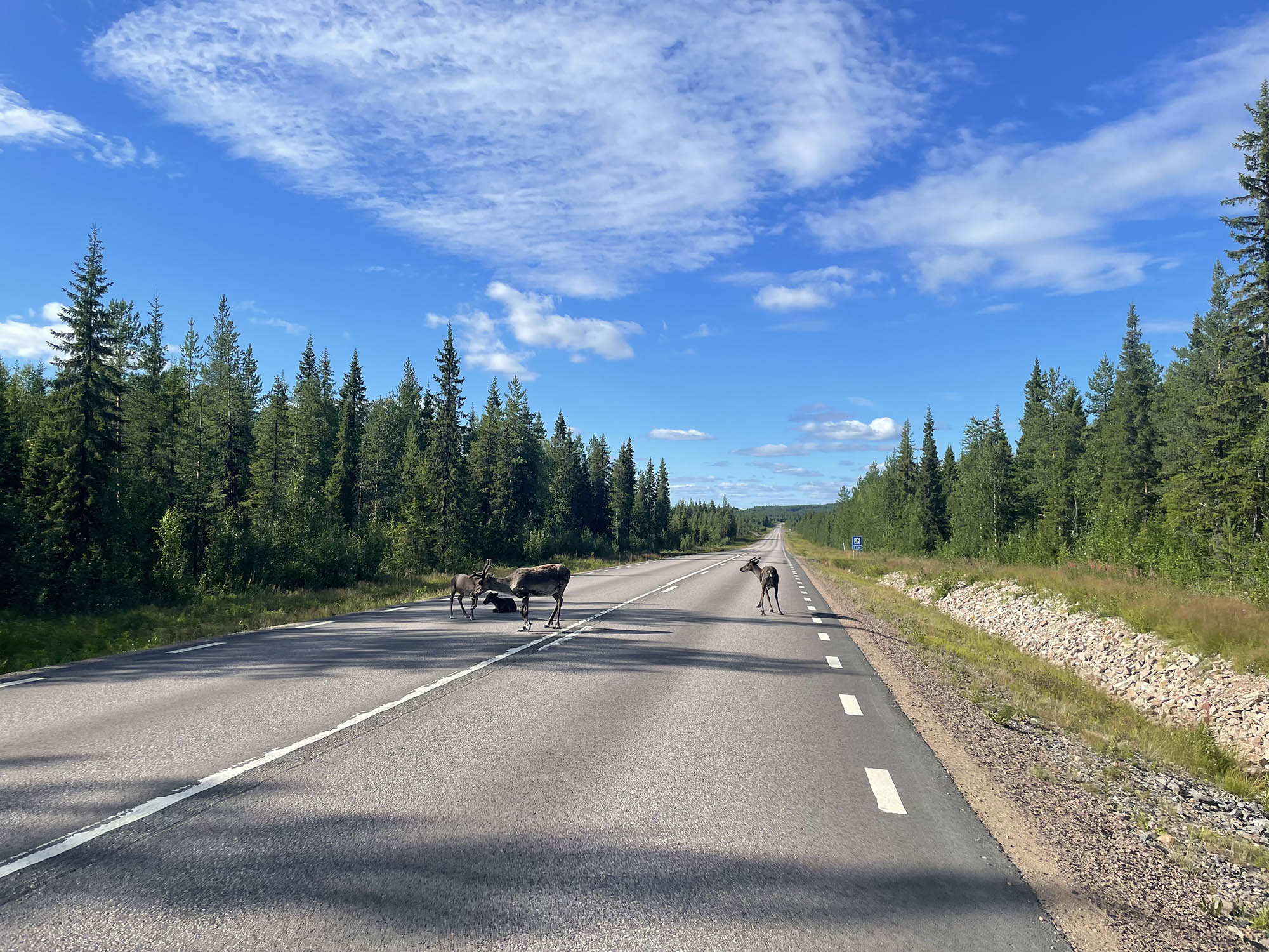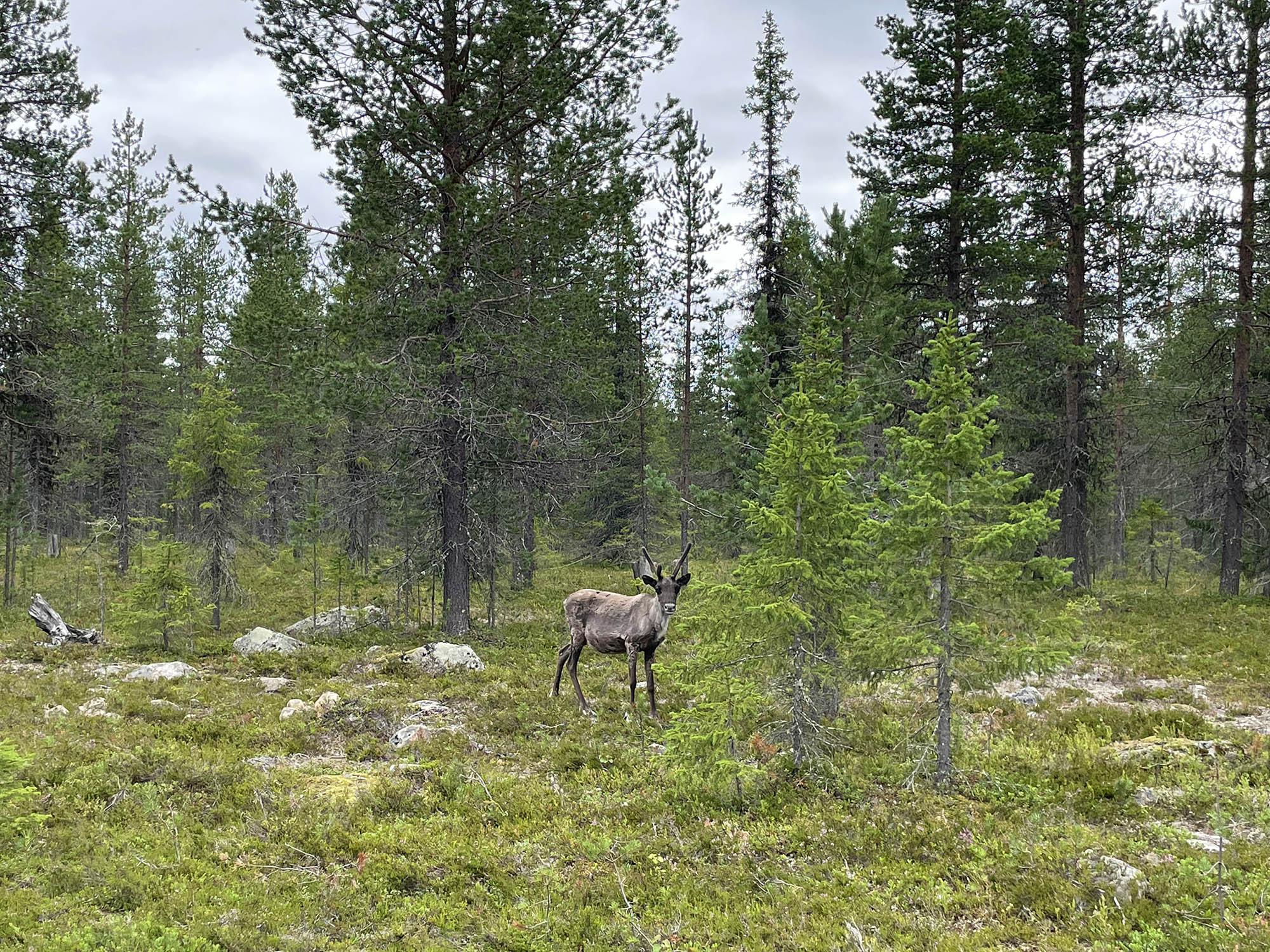 Vi körde vår bil och utrustning i cirka 5 kilometer till slutpunkten, där vi tänkte avsluta vår båtfärd och promenerade med raska steg tillbaka dit vi lämnade kanoten. Under promenaden träffade vi på några renar, annars var det väldigt lugnt i parken.