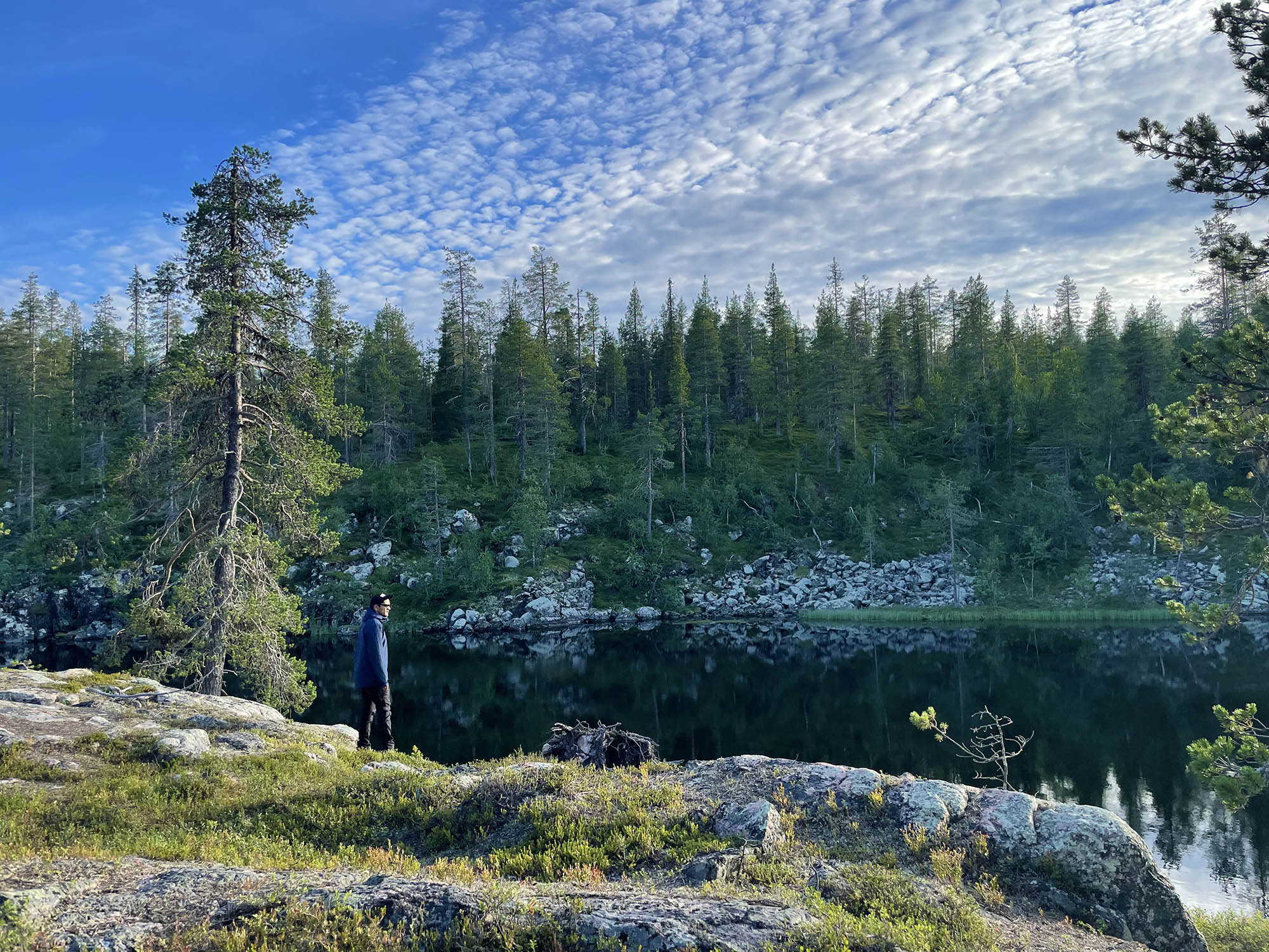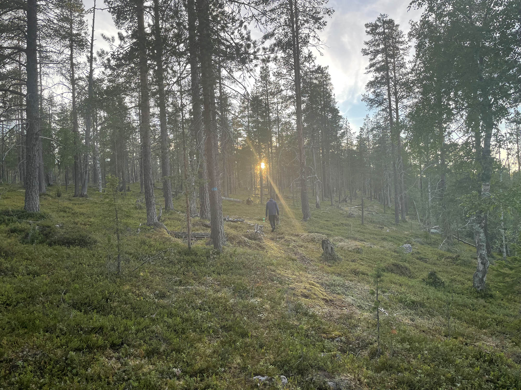 Vårt ekoparksäventyr började långt innan äventyrshelgen. Vi har länge pratat om och velat göra just det här: att övernatta i skogarna runt Naakajärvi. Området ligger oss nära i hjärtat då vi bor och jobbar i Pajala. Efter jobbet på somrarna brukar vi ge oss ut till området just utanför ekoparken och fiska medan vi sakta tar oss flera kilometer längs de kristallklara bäckarna. Man kan säga att det är vårt smultronställe, dit vi far och bara njuter av sommaren, midnattssolen, tystnaden, naturen och det magiska i att få uppleva det här fantastiska landskapet.