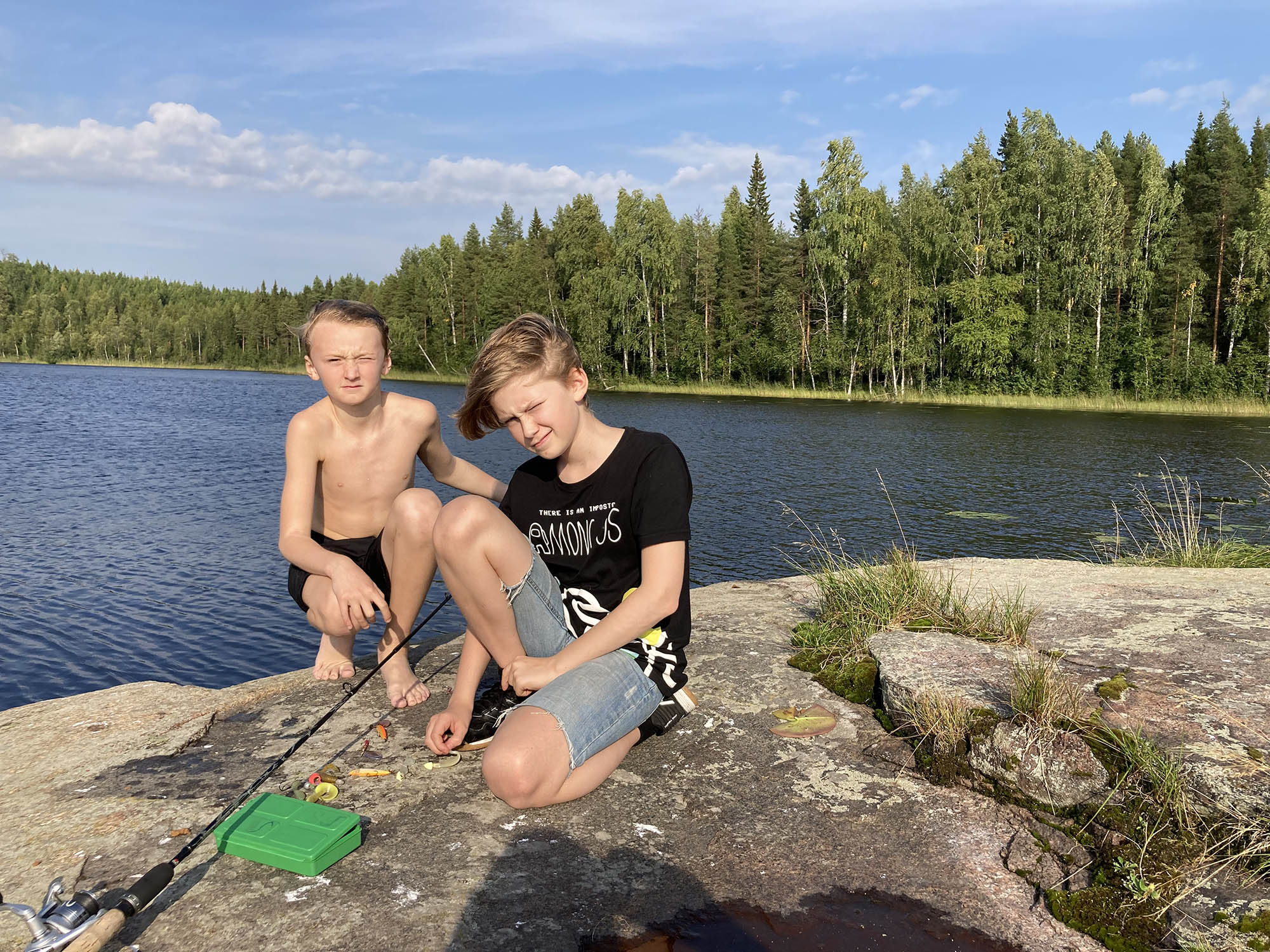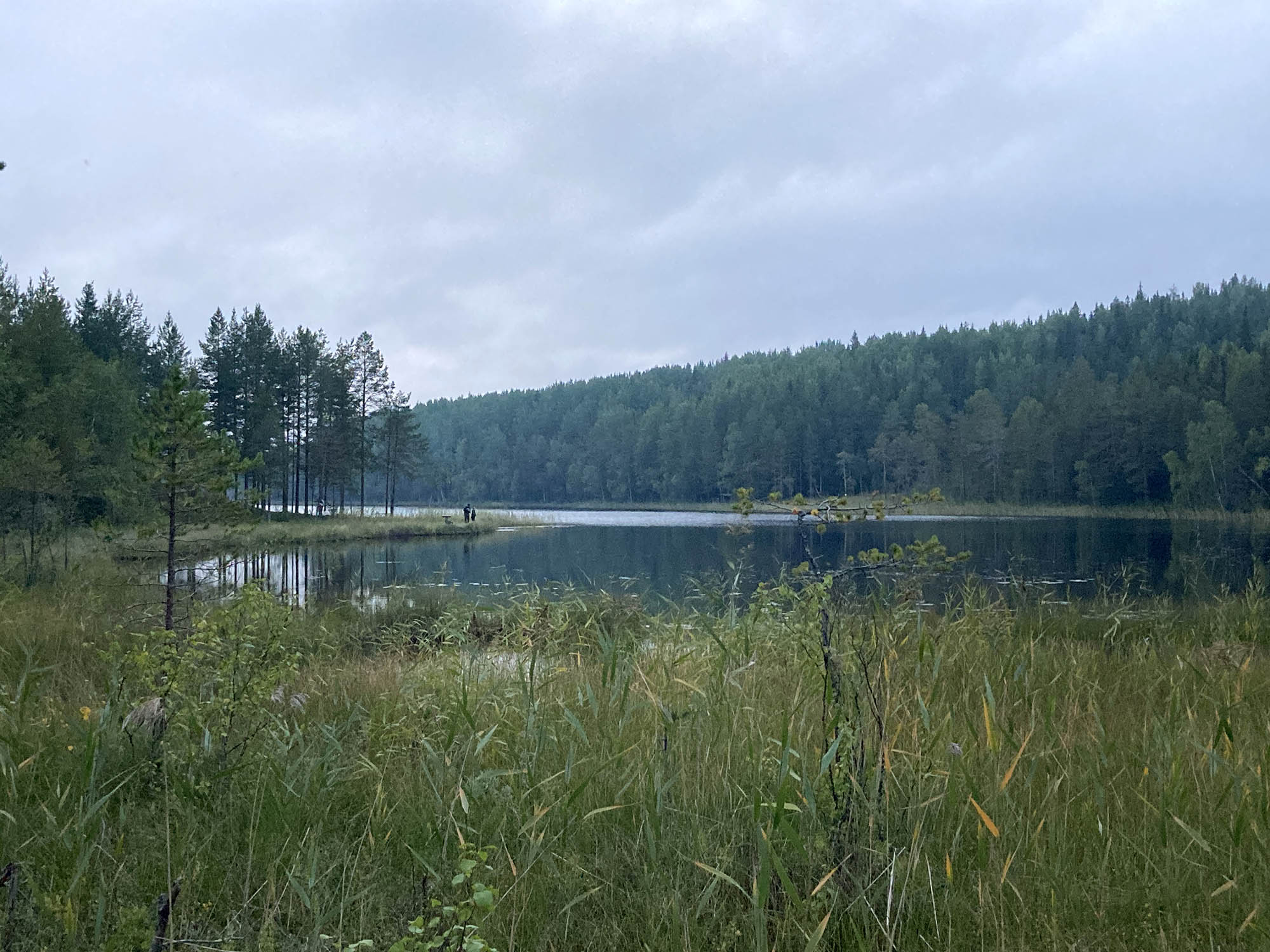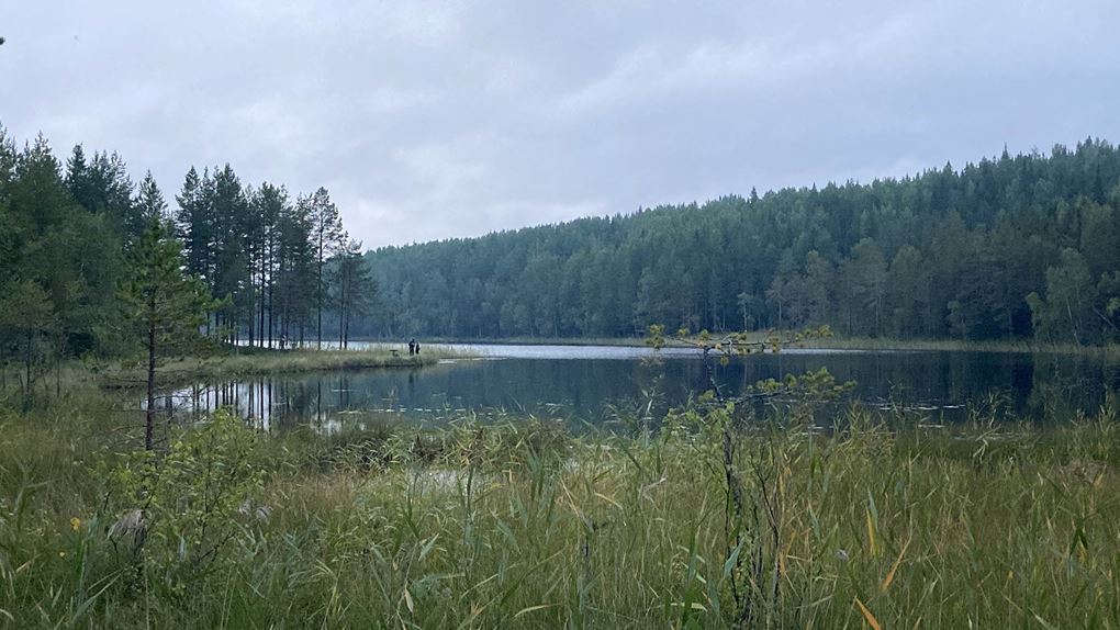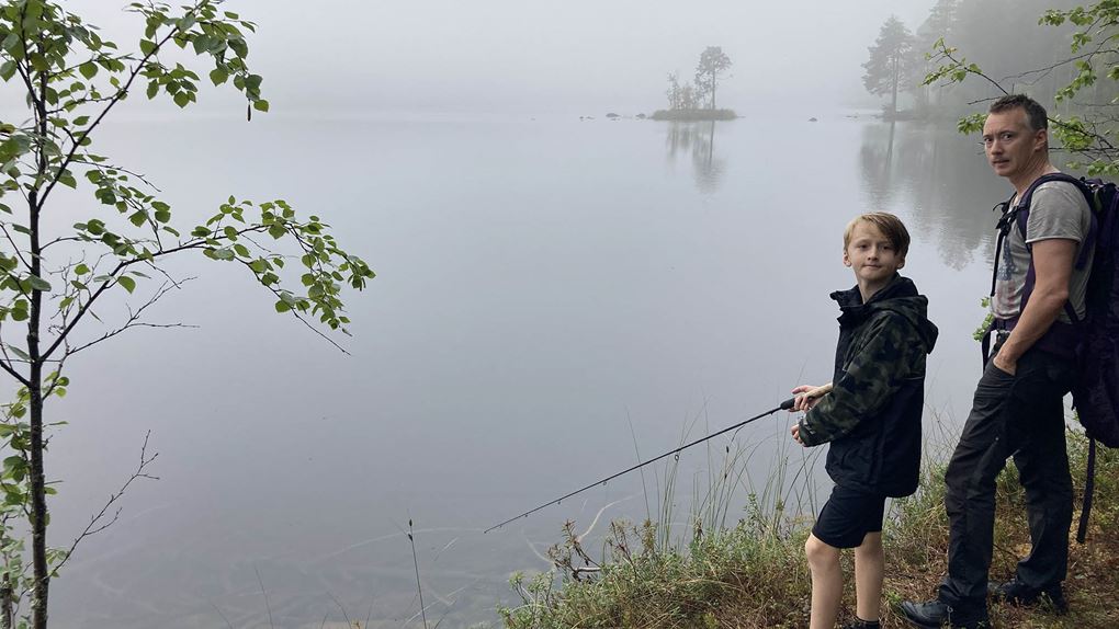 Regnet visade sig tack och lov vara snabbt övergående och på toppen åker regnkläderna av. Vi gör ett kortare stopp vid Abborrtjärnen för energipåfyllning och lite fiske. Här fanns en fin rastplats och stigen längs vattnet var mysig.