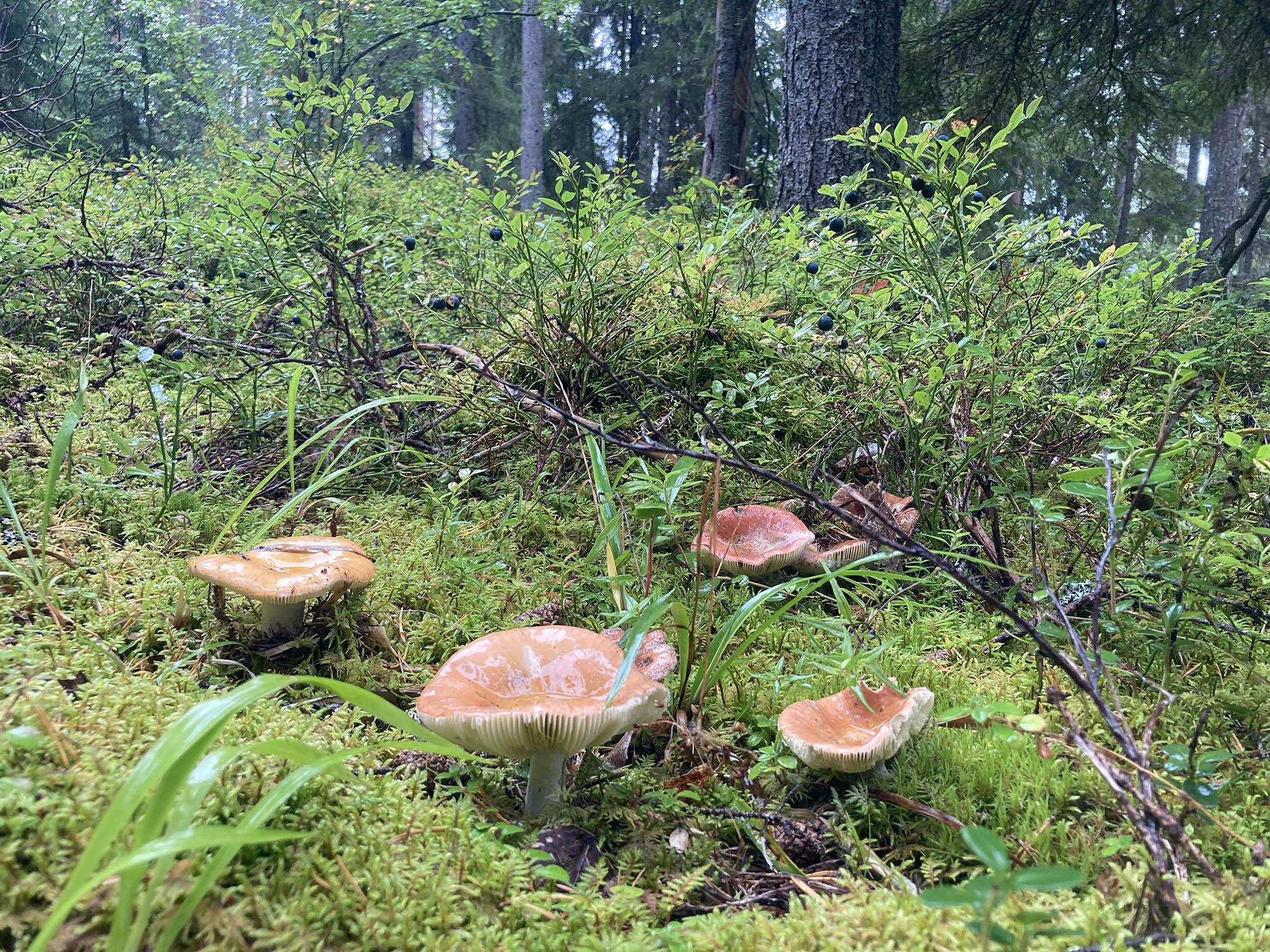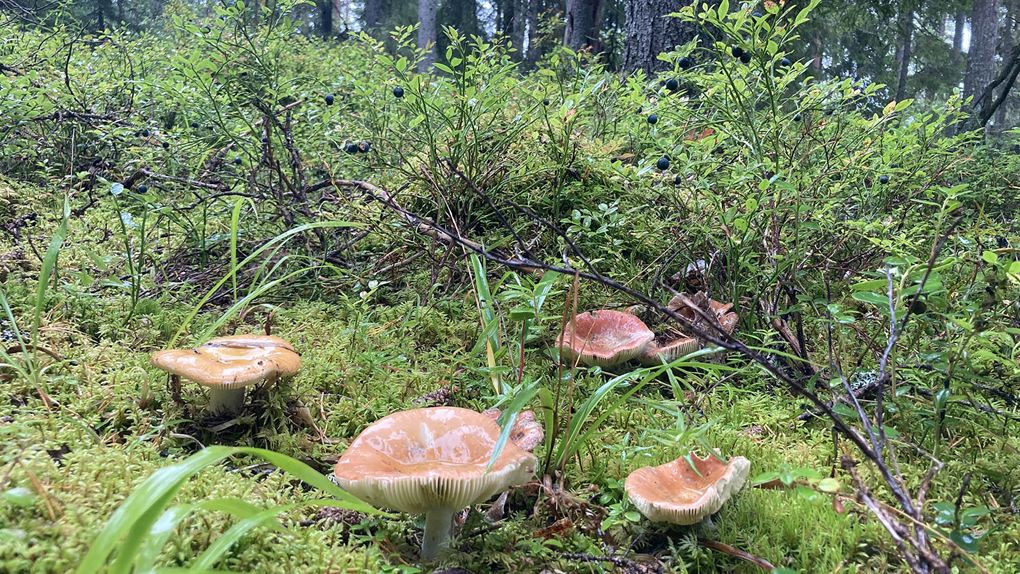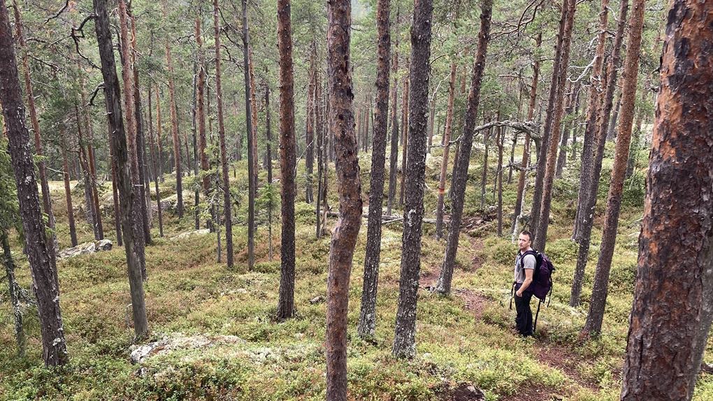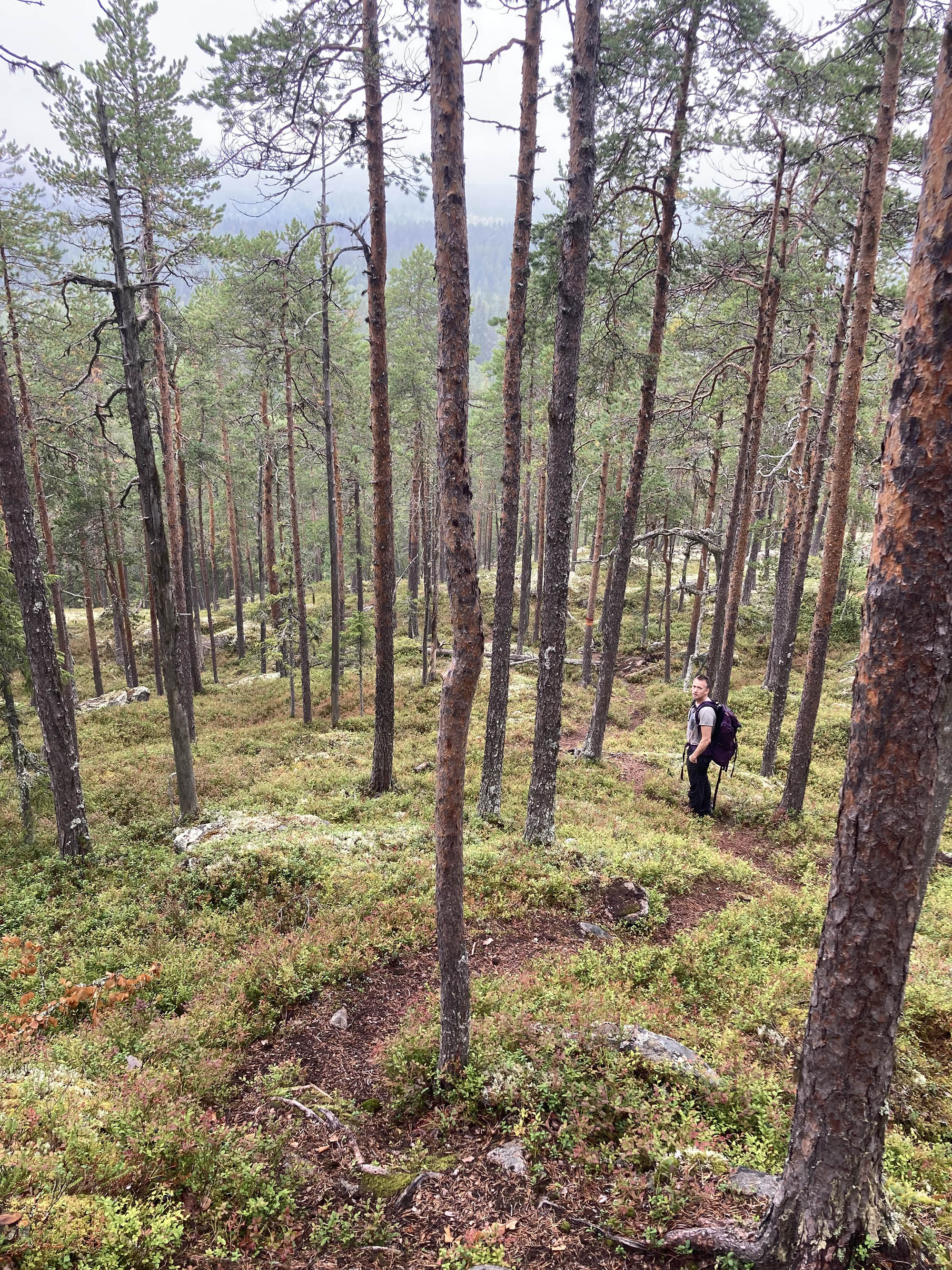 Vandringen ner går genom vacker tallskog och vid bergets fot ligger den lilla Bergtjärnen där vi fiskar och badar.