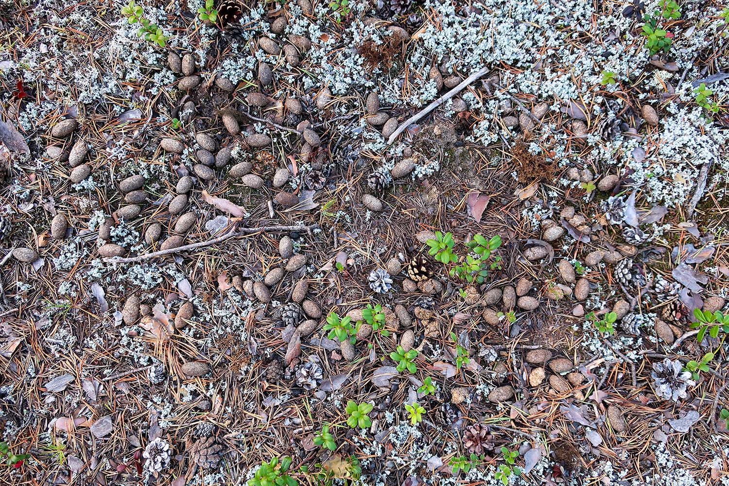 Djurlivet visade sig inte i någon större utsträckning. Kanske höll de sig borta då de hörde oss komma. Vi såg en snabb gnagare springa över vägen, kanske en fjällämmel för det var större än en skogsmus. En ekorre hoppade mellan grenarna i en gran då vi passerade och några fåglar såg vi, bland annat en lavskrika och troligtvis en orre. Andra djur hade lämnat spår och bajs efter sig framförallt älg och ren.