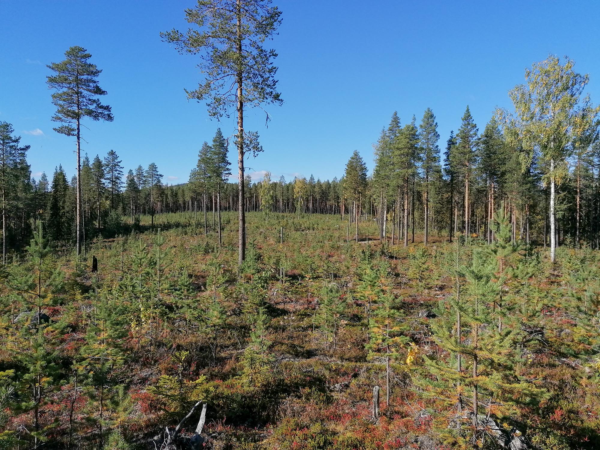 Vår vandring blev jobbigare än den skulle ha blivit om vi hållit oss till den planerade rutten. Då vi frångick vår planering mötte vi på såväl snårig och svårvandrad terräng och kalhyggen som börjat växa igen och myrmark. Nu var det väldigt torrt då vi var där så det var ingen fara och bara vid några enstaka ställen behövde vi ha extra koll på var vi satte fötterna för att inte bli blöta. Men i och med tung packning blev det ett rejält träningspass att ta sig igenom dessa passager. Därför var det också en lättnad att det fanns en hel del skogsvägar i området som vi kunde följa.