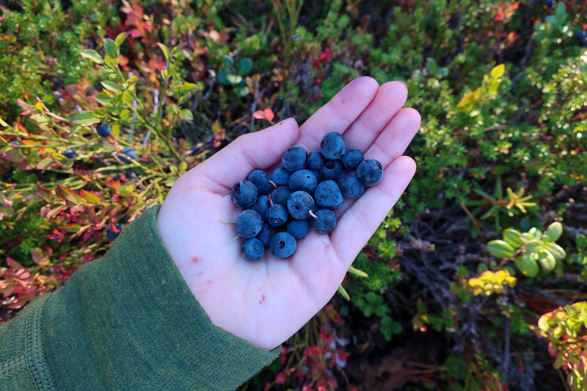 Nu kom vi till lättare terräng som bestod av skogsvägar och upptrampade stigar omgiven av den glesa tallskogen. Däremot hade vi ett nytt problem och det var att vi började bli utan vatten och det fanns inte särskilt många bäckar i den här delen av parken. Så när vi hittade en lite upphöjd och öppen plats där vinden stundtals fläktade valde vi att dela på oss. Sophie, Glenn, Oscar och Maya stannade kvar, vaktade väskorna och pustade ut. Joel, Maria, Olivia och Isabel gick för att hitta vatten. Vi hade med oss våra walkie-talkies så vi kunde anropa varandra. Vi som stannade kvar upptäckte att det fanns gott om stora saftiga blåbär att mumsa på.