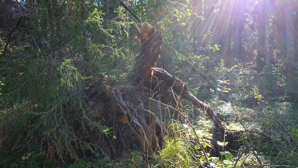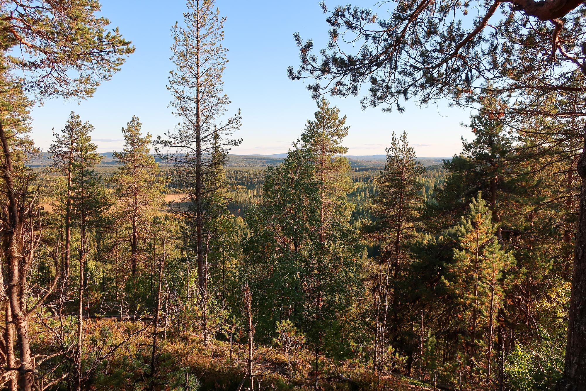 Kanske var det att vi höll utkik efter alla dessa tecken som gjorde att det var svårt att få känslan av att vara i orörd skog. När man är ute på fjällen känner man ofta att man är långt borta från bebyggelsen och civilisationen. Den känslan var svårare att hitta i Vuollerims ekopark och det faktum att vi hade bilarna bredvid tältet bidrog säkert till det. Å andra sidan är det också en sak som gör parken tillgänglig för fler. Kanske kan du av någon anledning inte kan vandra längre sträckor t.ex. med yngre barn och att då kunna nyttja de skogsvägar som finns för att komma djupare in i parken kan bidra till att fler kan besöka t.ex. Kainoberget.