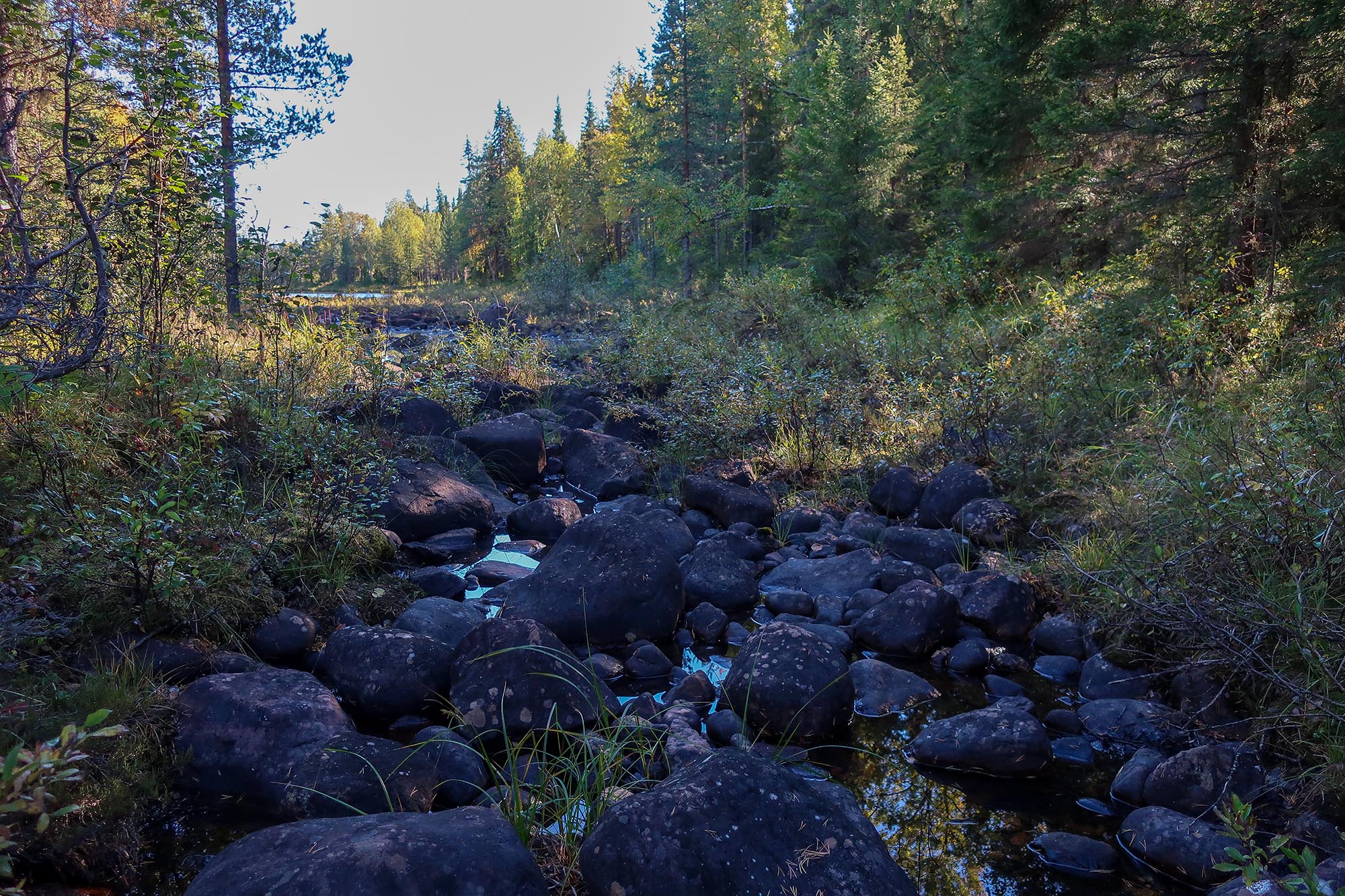 Och så har vi då knotten. Det är bara att konstatera att de förstörde vår vistelse. Visserligen var det inte den värsta sorten och vi lyckades lura barnen med den lilla vita lögnen ”det här är nog knott som inte bits de är bara irriterande” och så fick vi klia våra egna bett i smyg när barnen inte såg. Att inte kunna stanna upp och pusta ut eller återhämta sig gjorde att vi ständigt var i rörelse och det var tungt både för oss vuxna och för barnen. Vi hade räknat med att klara oss undan såväl mygg som knott när vi åkte så här sent och myggnäten som man kan trä över kepsarna hade vi lämnat hemma. Hade vi haft knottfritt hade dagarna skulle vårt äventyr blivit helt annorlunda och vi hade kanske hållit oss till vår planerade rutt.