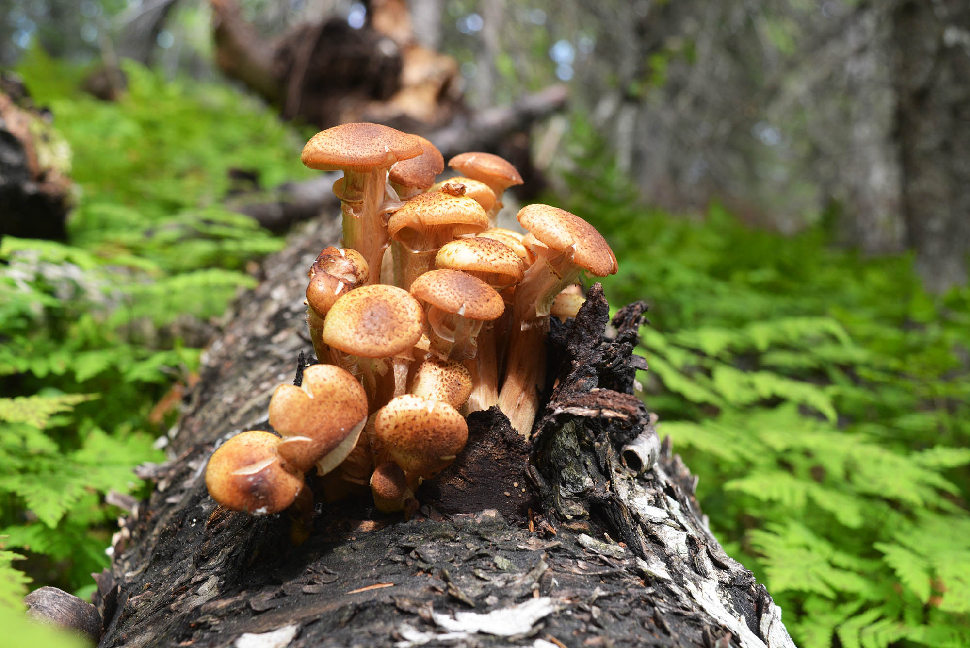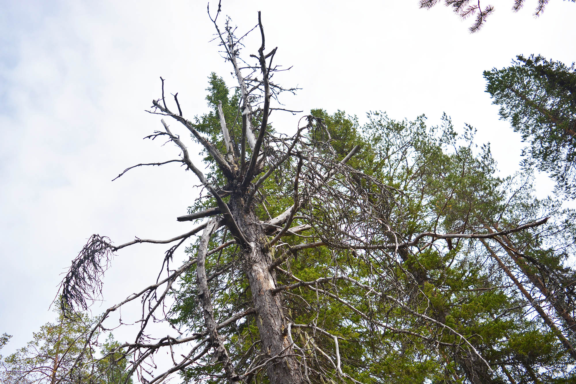 Därefter tog vi oss in i Dubblabergens naturreservat. Där märktes tydligt en större mångfald av arter och stämningen blev mer omfamnande. Vi hittade stående och liggande döda träd och fascinerades av djur- och insektlivet och inte minst svamparna. Inne i naturreservatet kändes det som om vi kunde slappna av på riktigt. Vi smälte samman med stammarna och mossan. Att zooma in på olika fenomen omkring oss; förmultnande träd, ett enstaka barr, en rostfärgad lavspor, och låta sig fyllas av nyfikenhet och fascination är en svårslagen upplevelse.