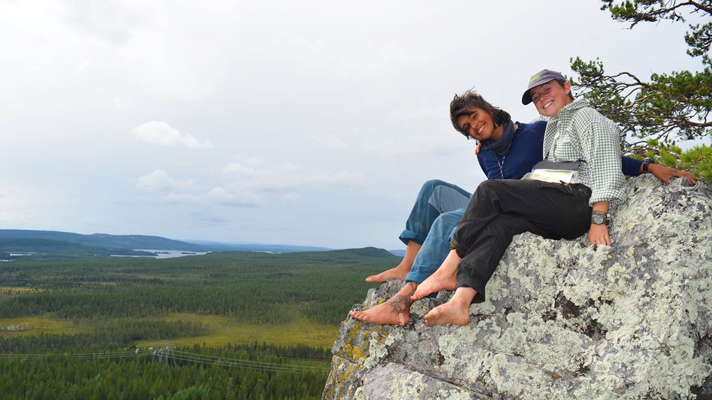 På Flyggbergets topp med utsikt och bär i magen, var vi som absolut gladast den dagen. Vi vill dock varna att det finns återfallsrisk för maniska bärplockare då Salima med jämna mellanrum fick dra ut sin vän från hjortronförklädda myrar. Det är lätt att fastna i träsket.