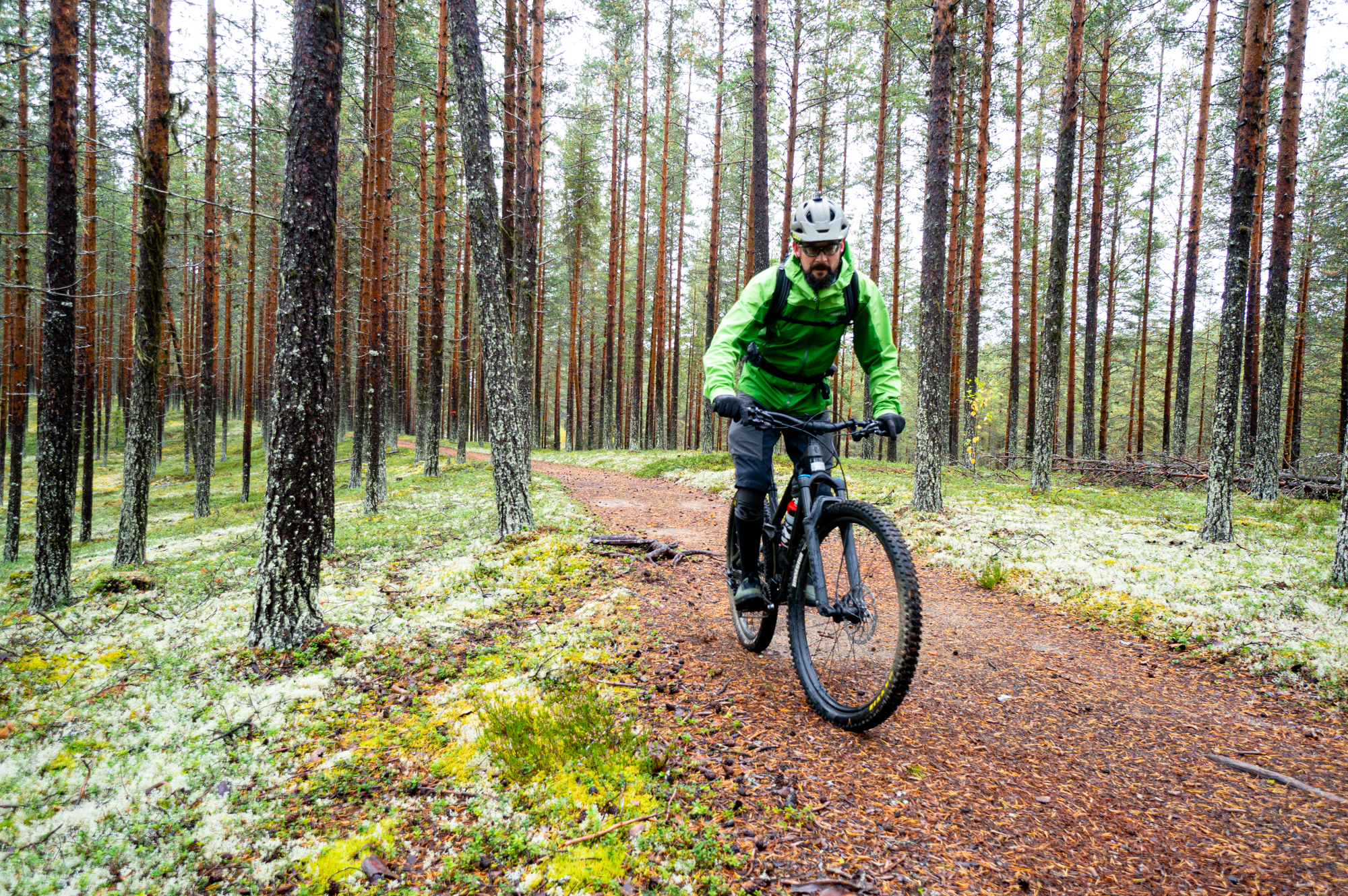 Den första sträckan visade sig ganska enkel rent tekniskt vilket var en bra start för att bli varm i kläderna. Det gick lätt att få upp fart på stigen som bestod av packad fin sand. En bit in på leden tog jag en avstickare och cyklade Långtjärn runt, en smal singletrack som löper på skrå längs med åsen.