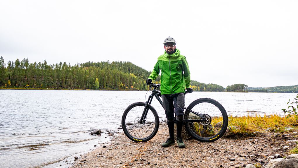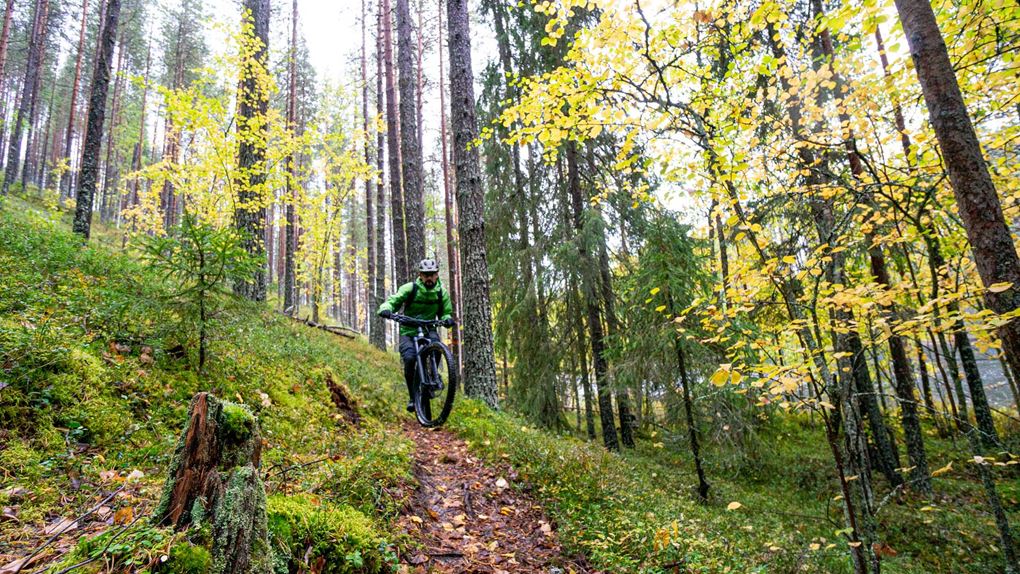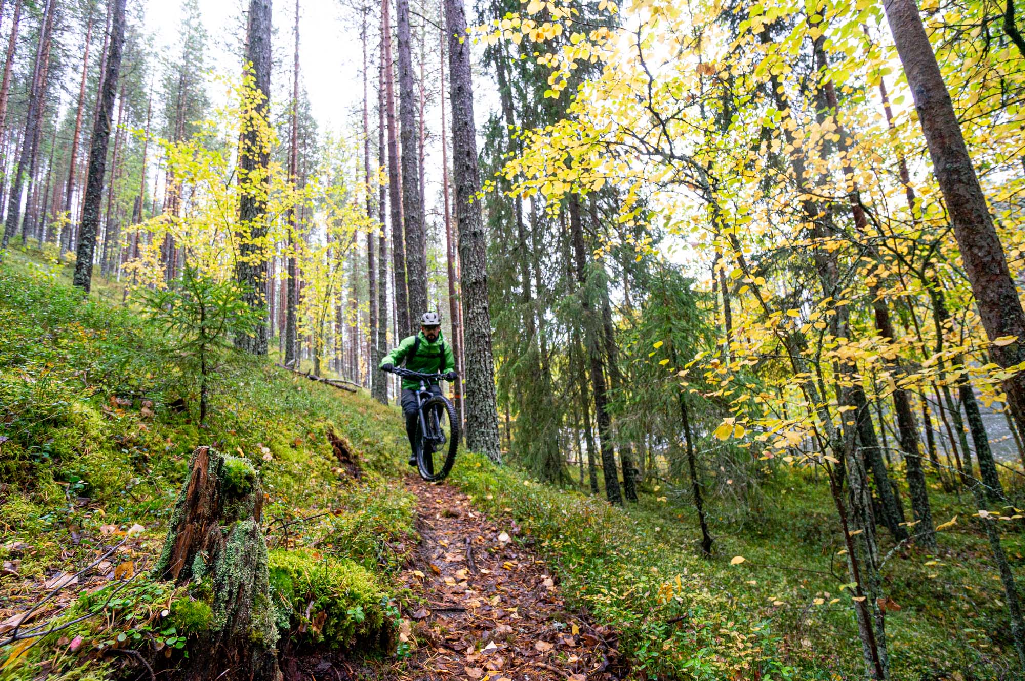 Följ med när Henrik Gistvall cyklar mountainbike genom Ekopark Skatan. Vad tycker han om lederna? Och hur går det med höstregnet?