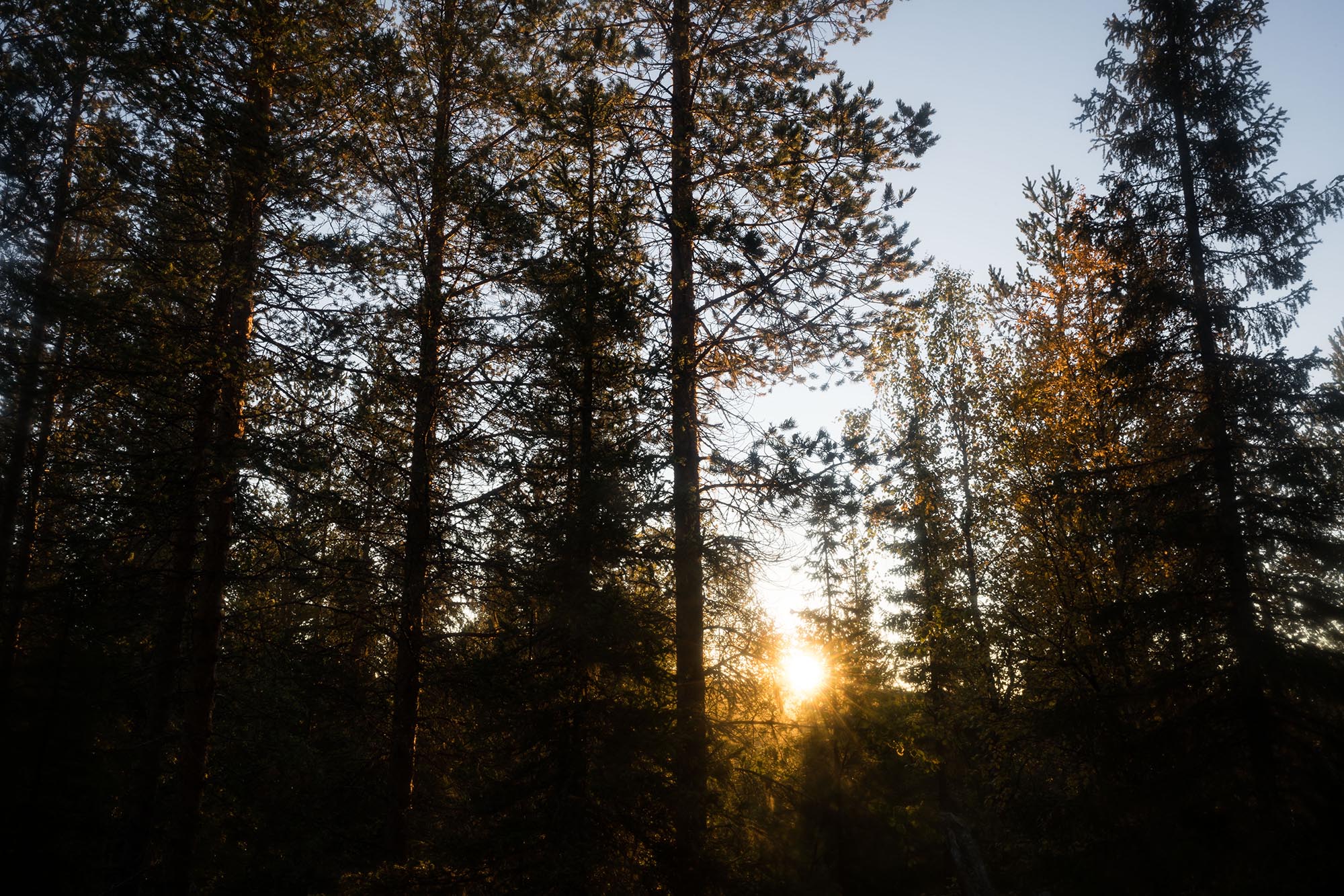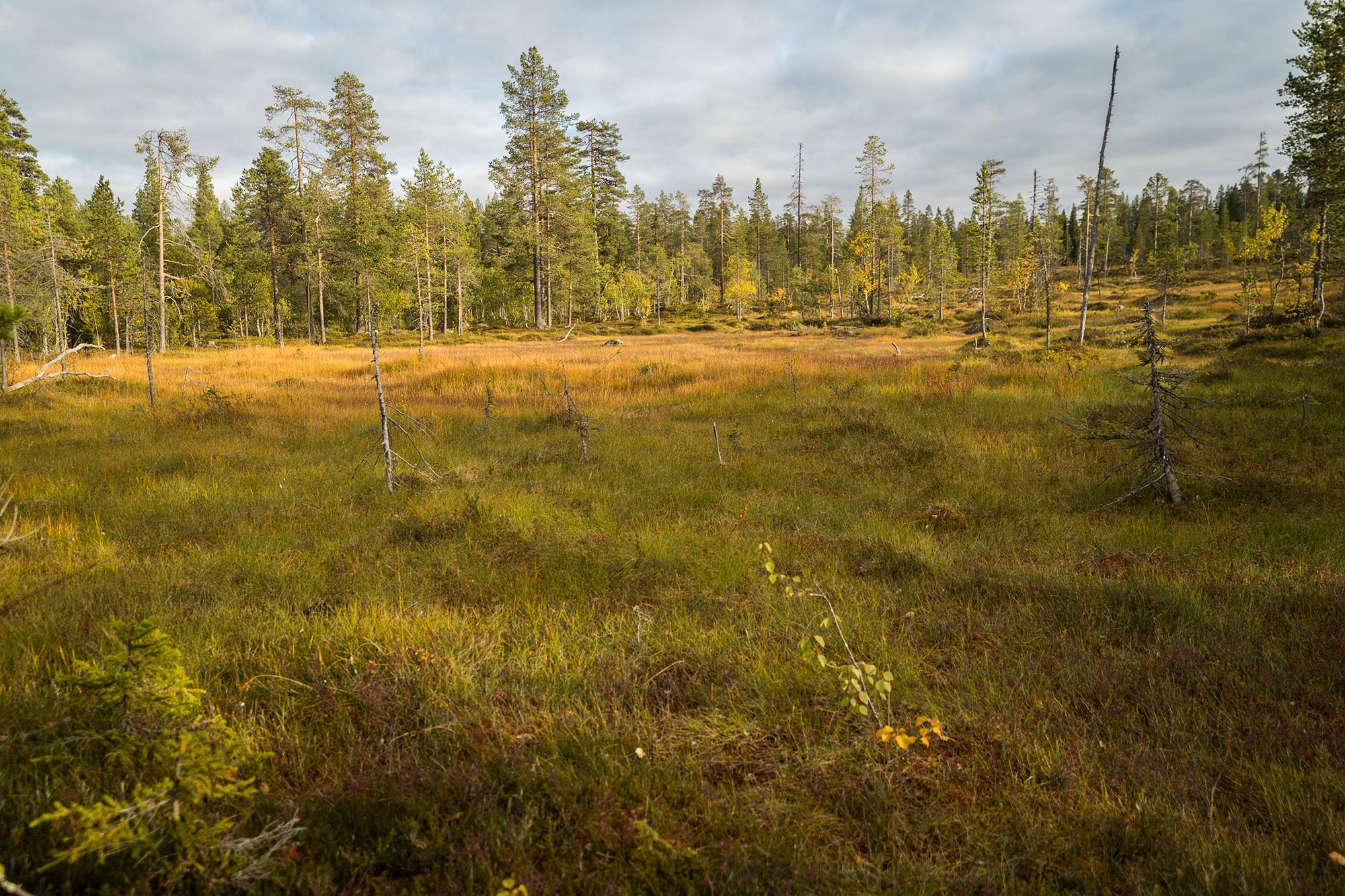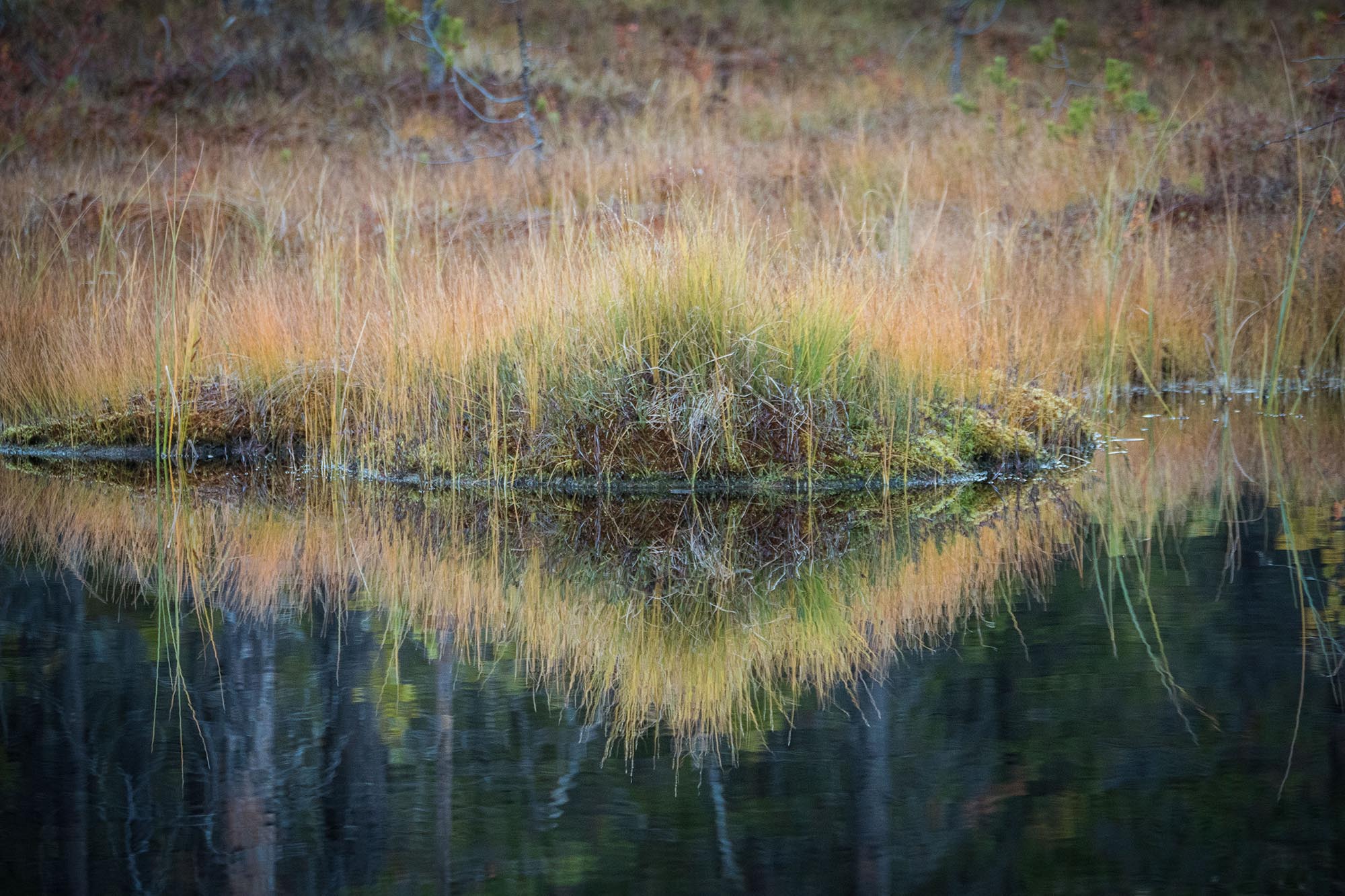 Det knastrar lite lätt när jag går över den gungande halvt frysta myrens mossa. Ljuset är fantastiskt, och jag ägnar nog en två timmar åt att springa runt och försöka fånga den magiska morgonen på bild. Sedan sover jag några timmar till, innan det är dags att packa ihop och traska de sista 3-4 kilometrarna tillbaka till bilen.