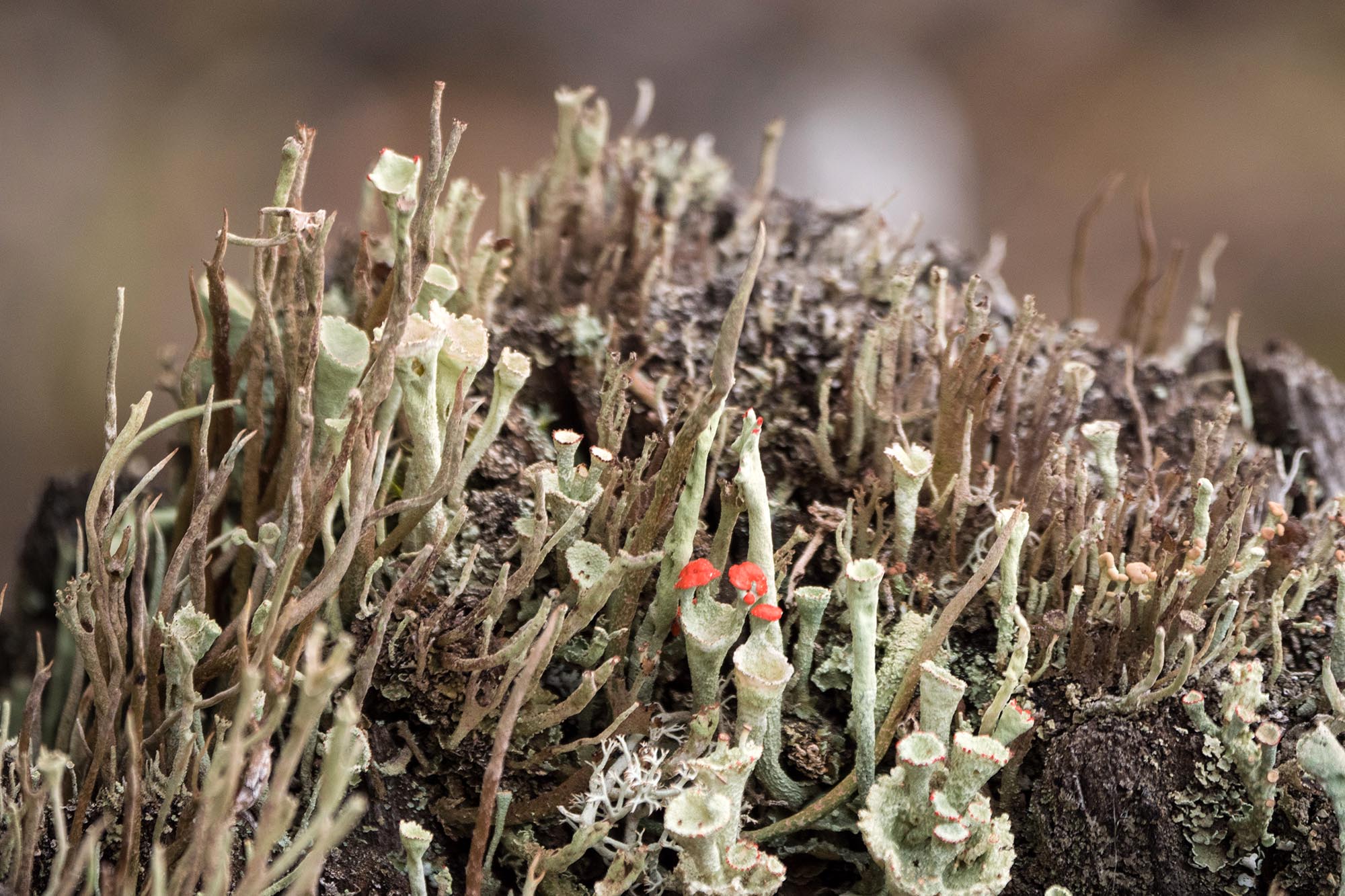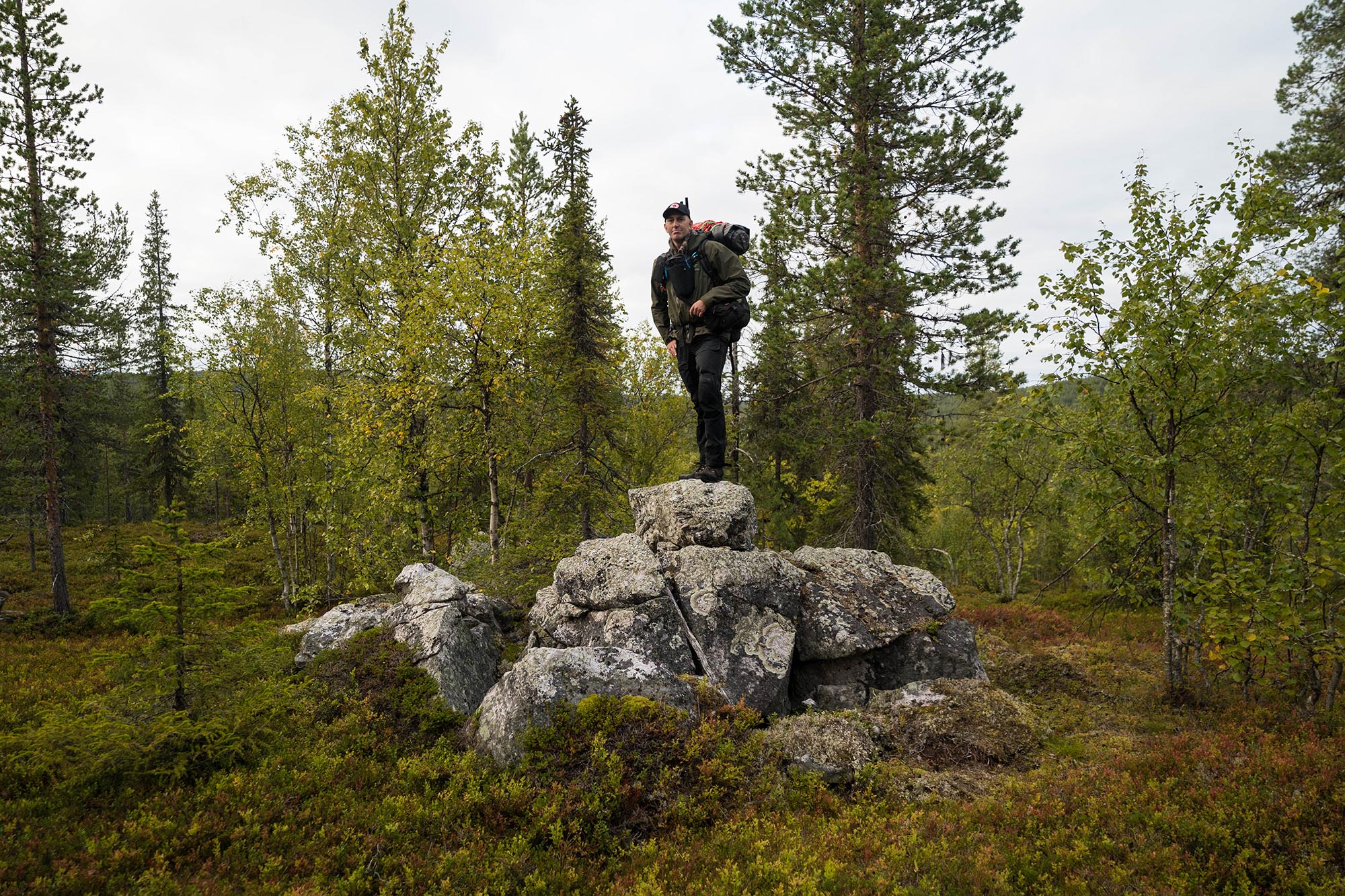 Det är svettigt. Och det är en del mygg. Men det är vackert, och det är vilt. Jag klagar inte. Det blir en hel del stopp för fotografering, och för att undersöka spännande stenformationer och intressanta växter. Jag möter en hel del skogsfågel också - gissar framförallt tjäder och ripa - som tungt flaxar iväg mellan trädstammarna när jag kommer klampande.