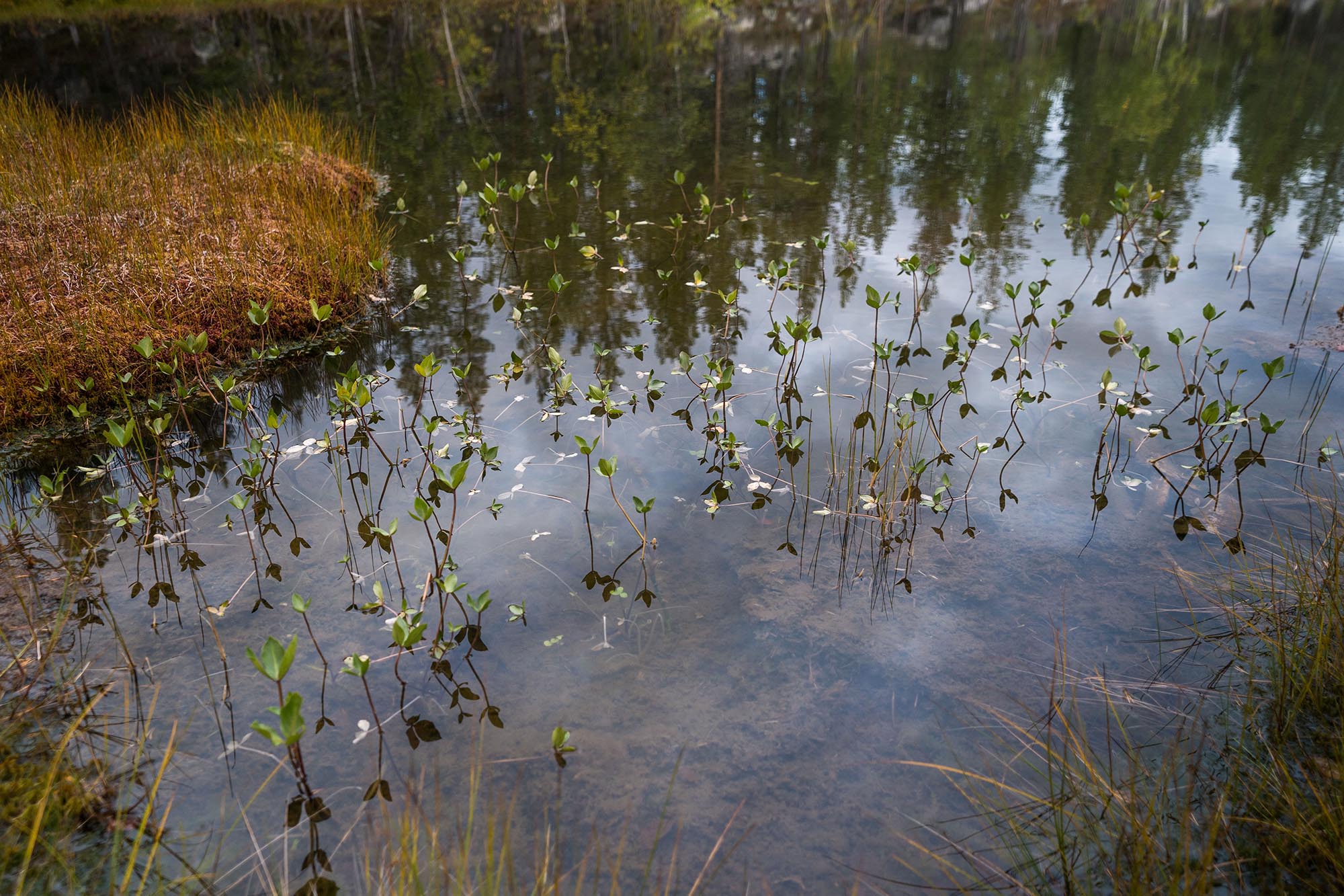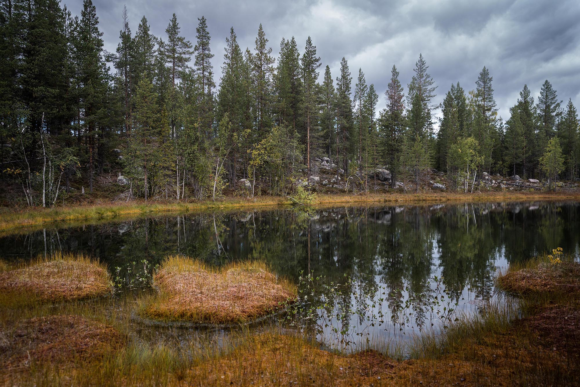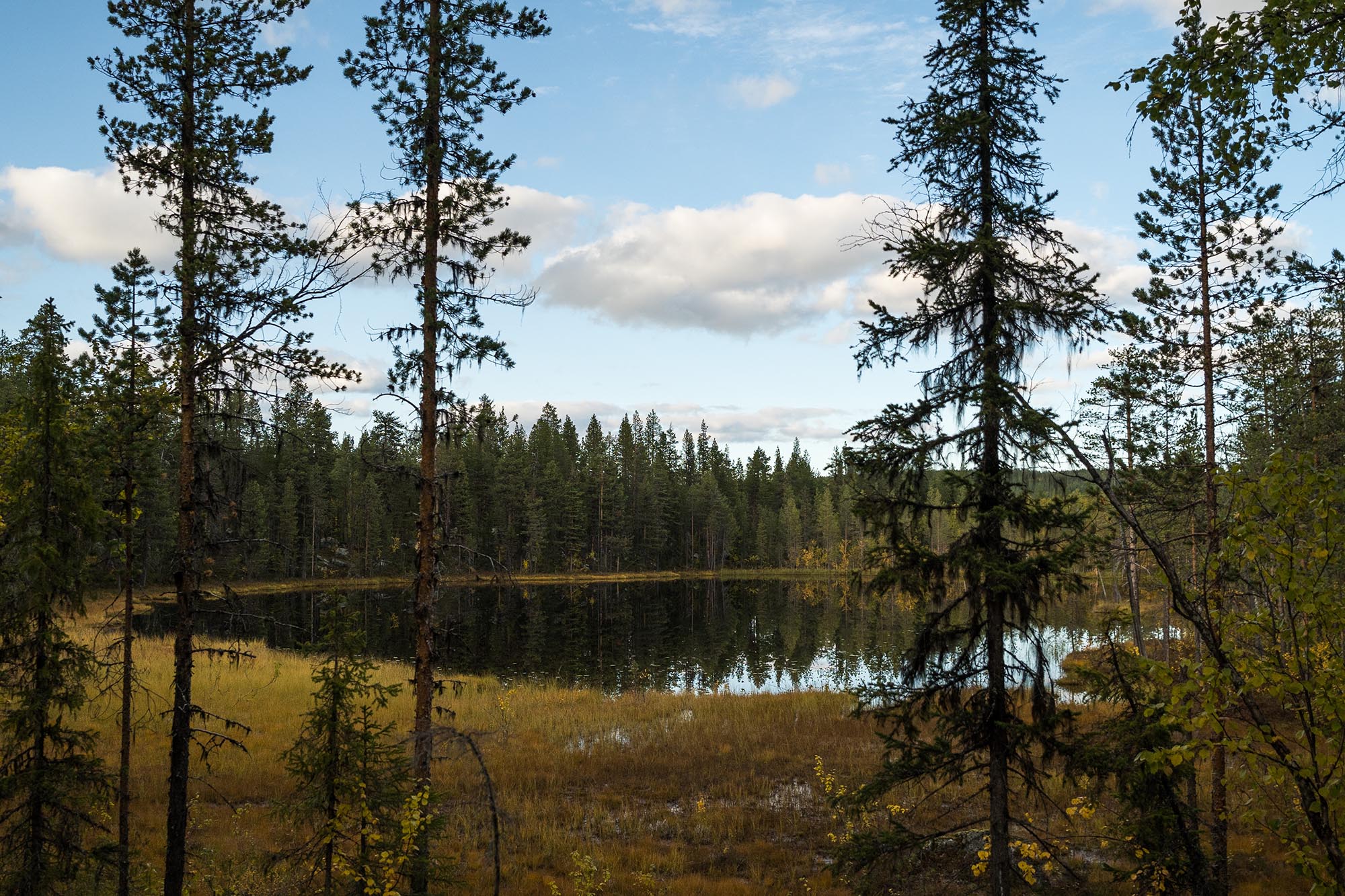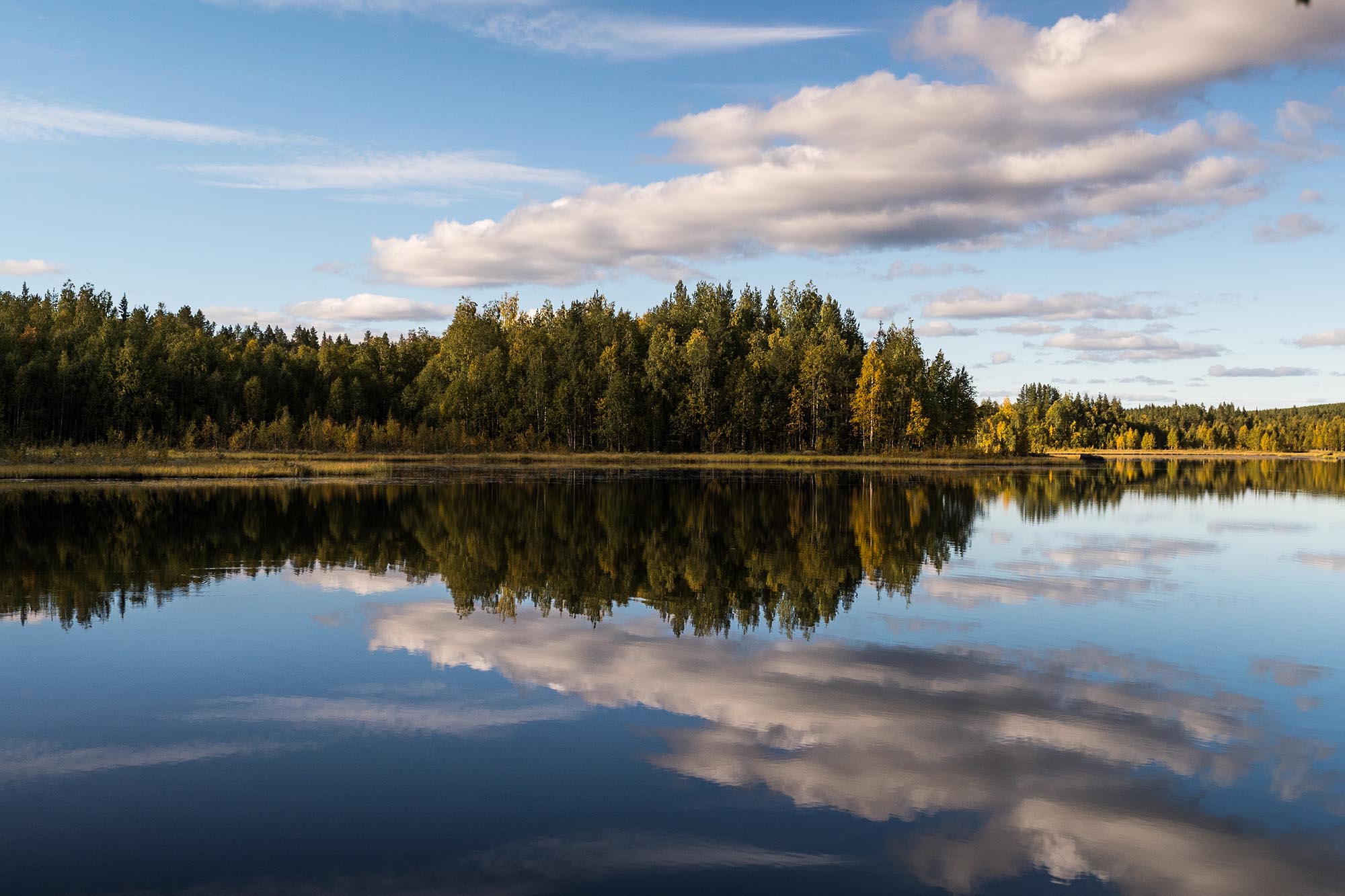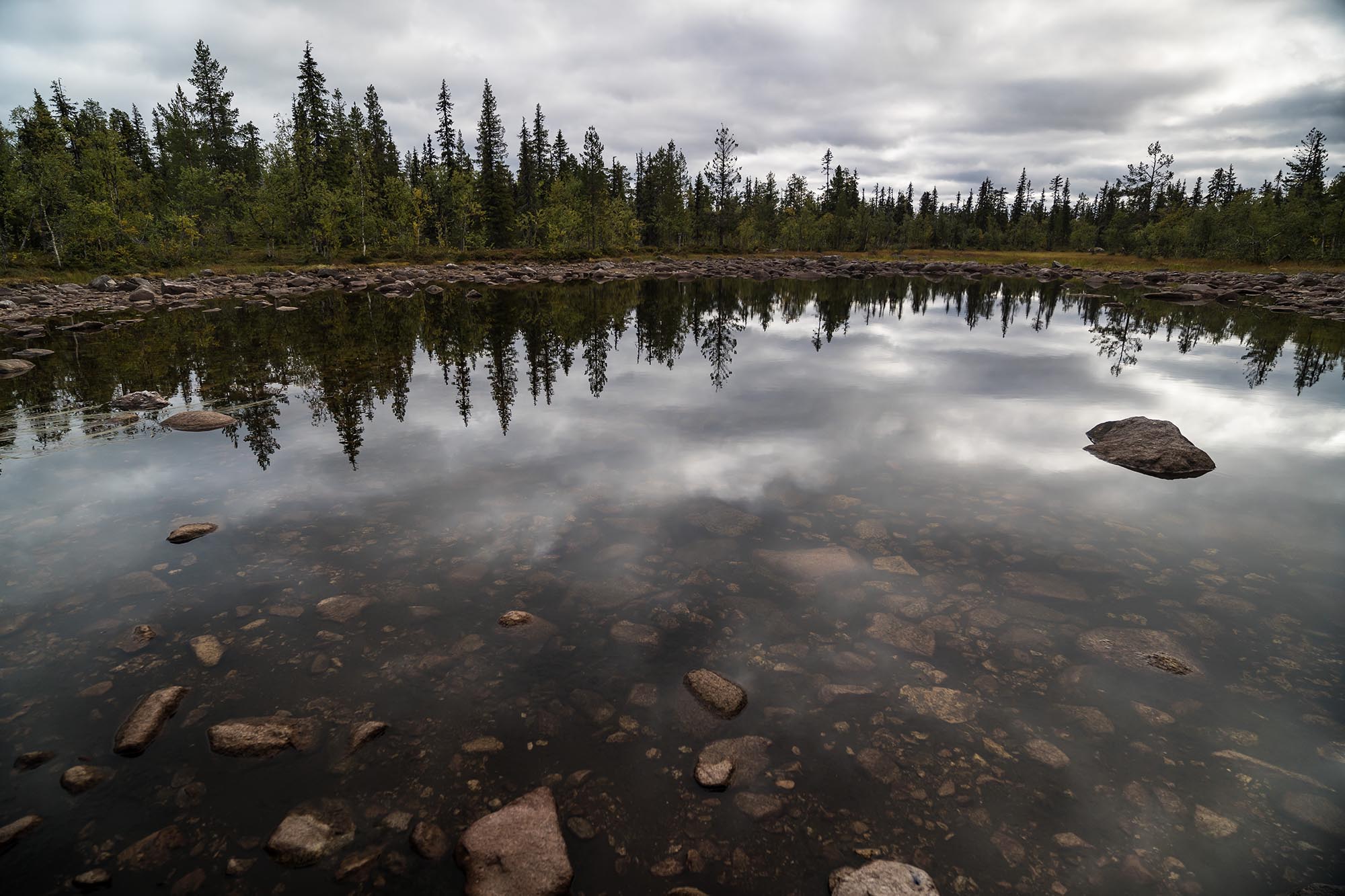 Tystnaden slår emot mig när jag kliver ur bilen och sträcker på mig, efter att koncentrerat ha krypkört de sista 5-6 kilometrarna på den allt mer gropiga skogsvägen. Det är vindstilla. Mulet. Den lilla namnlösa sjön söder om Tapmukstugan ligger spegelblank. Det är otroligt vackert, och fridfullt. Luften andas höst.