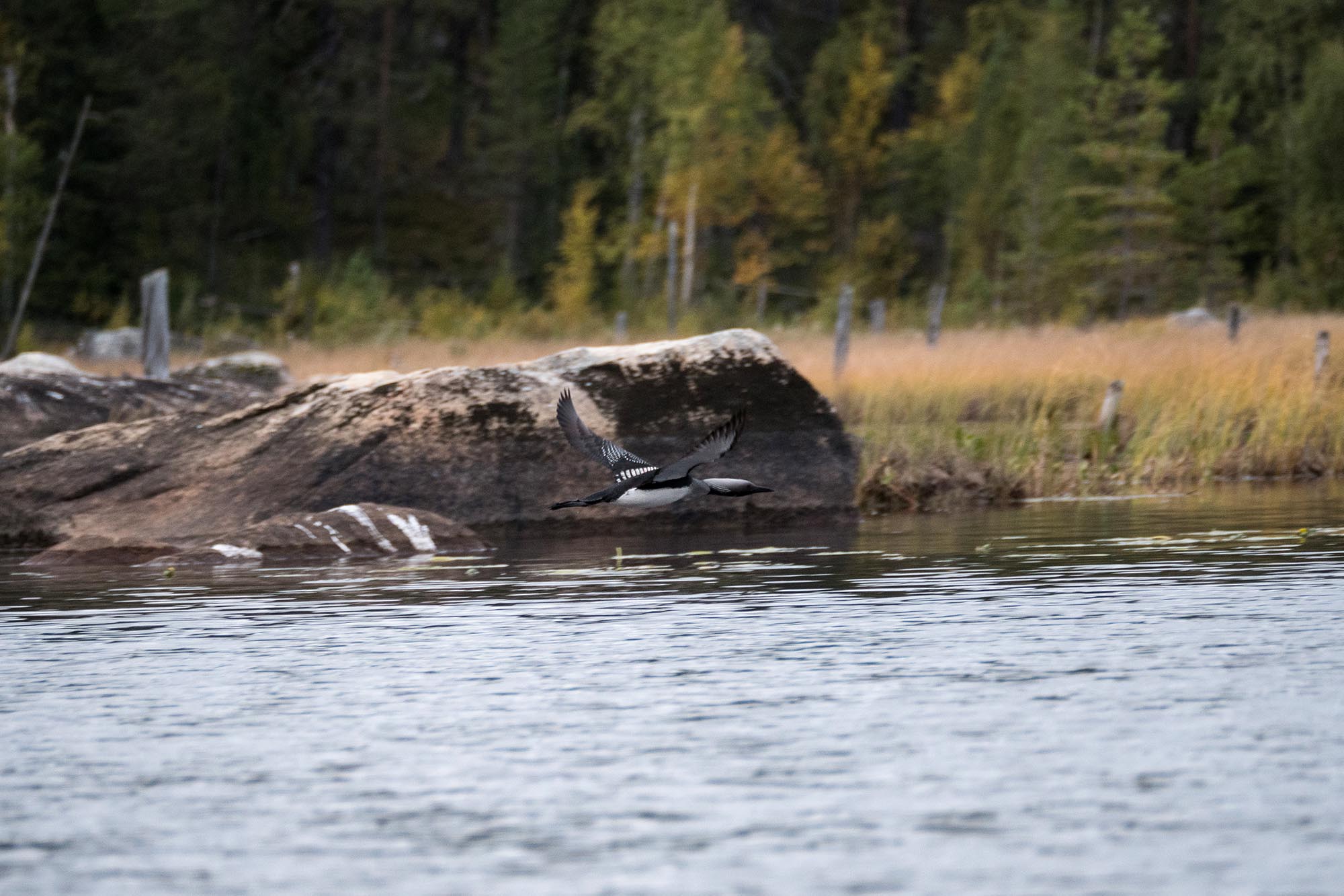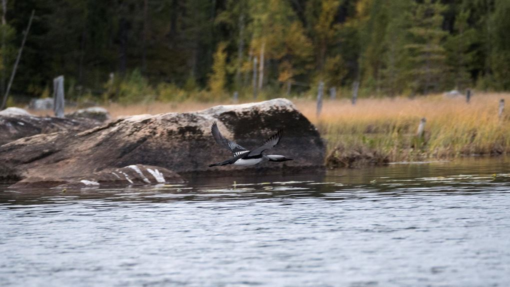 Bitvis är det lite våtmarkskänsla över den passage som vidtar. Det är riktigt grunt, mycket stora stenar och en hel del spännande växtlighet. Fåglarna verkar stortrivas också. Jag möter en skygg skrakfamilj, samtidigt som en sångsvan cirkulerar i luften, och jag lyckas efter ett antal försök fånga en en storlom i flykten med kameran. Lycka!