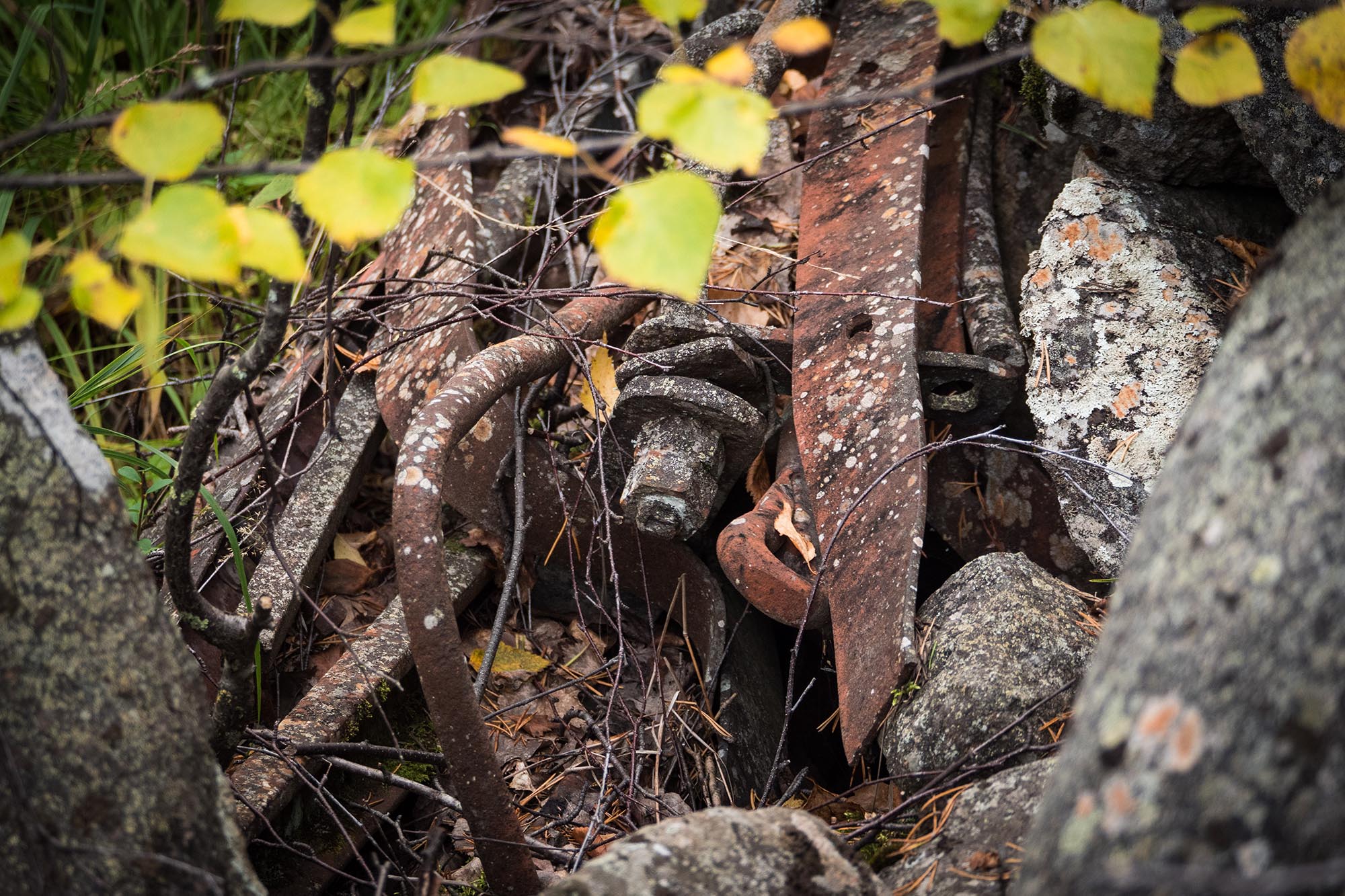 Nu finns det bara spridda spår kvar av det som måste ha varit en ganska omfattande verksamhet, att döma av dammens proportioner. Men ståtligt reser sig ändå resterna av dammen på sidorna av sjön. Här finns även lämningar efter byggnader, ståldetaljer som blivit kvar och annat spännande, som jag tar mig tid att undersöka, innan jag paddlar vidare nedströms.