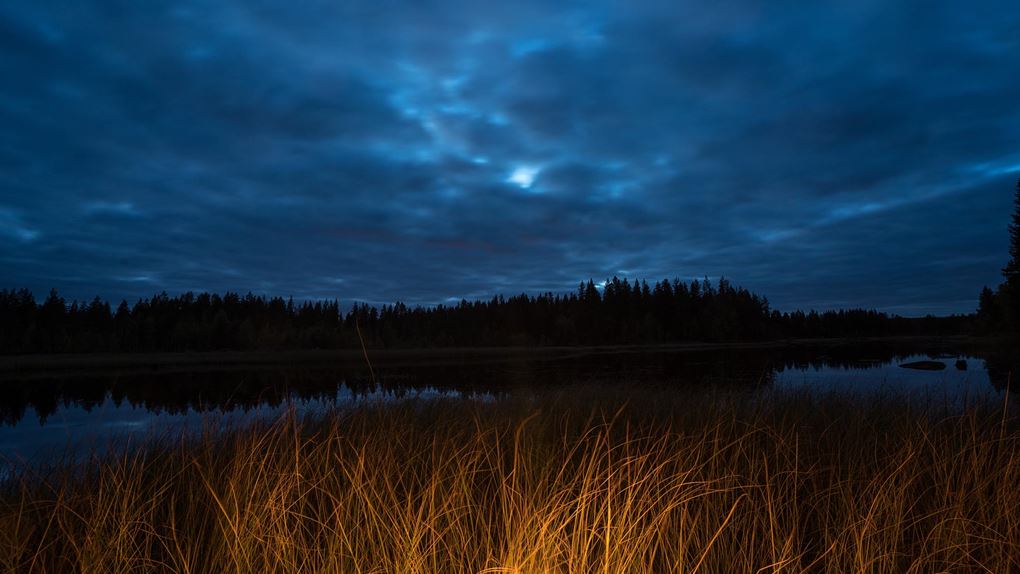 I mörkret bortom eldens sken hör jag under kvällen flera plask. Kanske är det den lokala bävern som tittar förbi för att säga hej? Att det finns bäver här råder det i alla fall ingen tvekan om, att döma av de karaktäristiskt avgnagda träden.