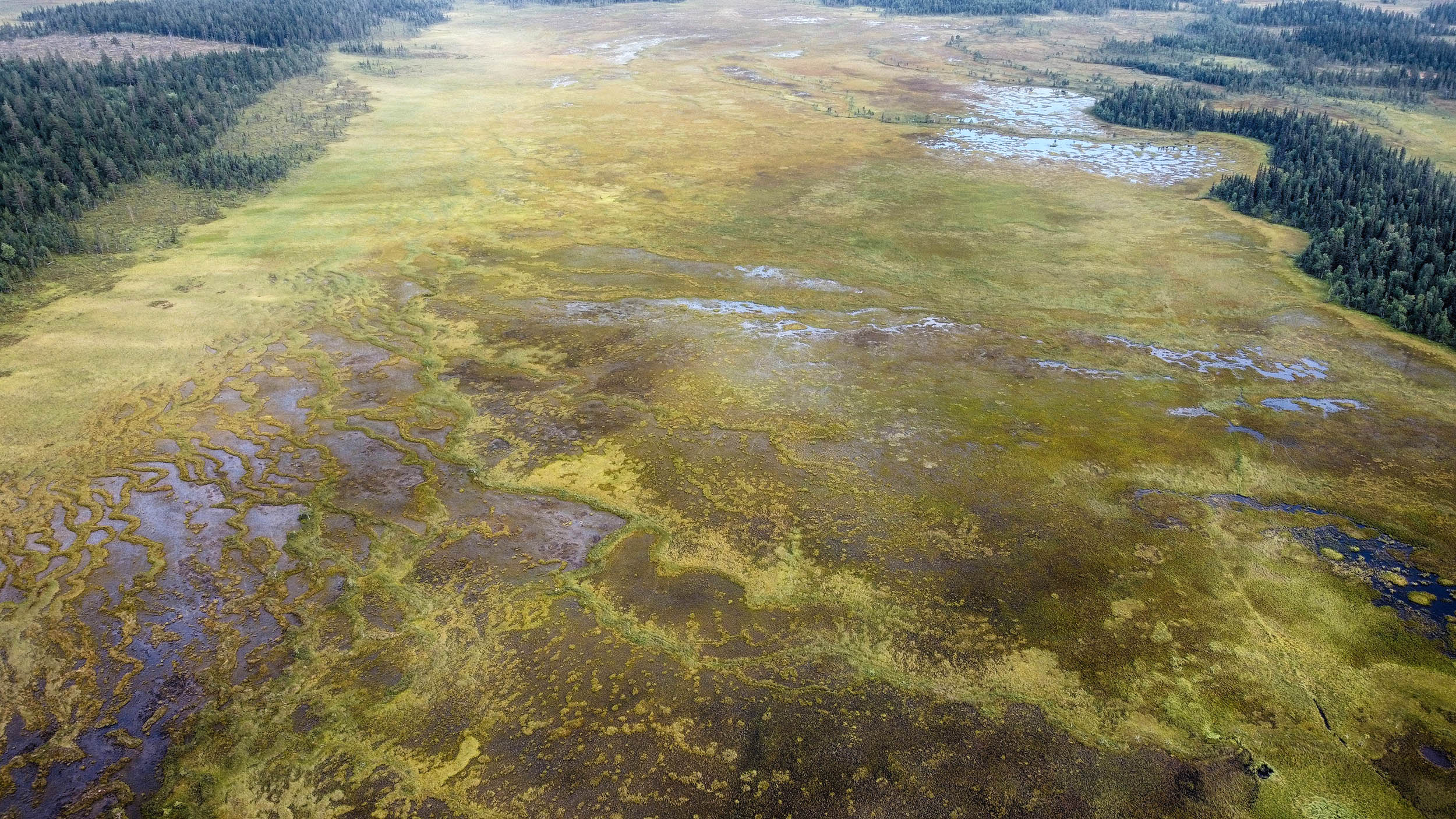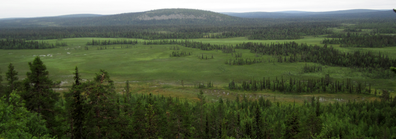 Jag får koncentrera mig för att hålla rätt kurs. Det är påfallande enkelt att tappa kursen när man går obanat i en vildvuxen skog, då Ekopark Karhuvaara framför allt består av gammal skog. Och i en gammal skog råder ingen ordning utan allt är huller om buller. Och är det inte skog så är det myrmark. Här råder det motsatta förhållandet, lätt att hålla kurs men ofta omöjligt att ta sig rätt över.