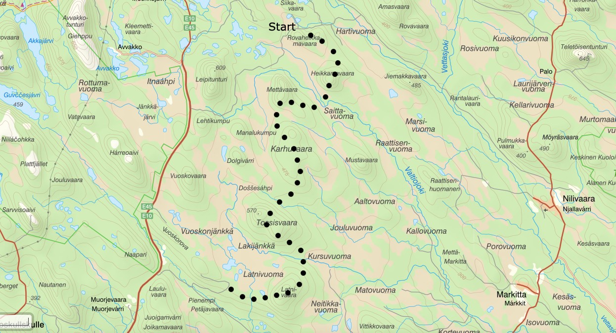 - Läge: Mellan Gällivare och Skaulo i Norrbotten.