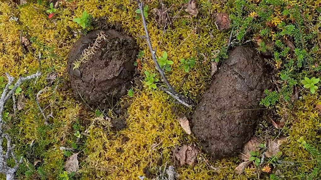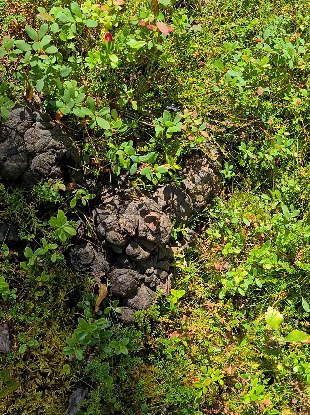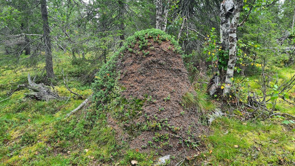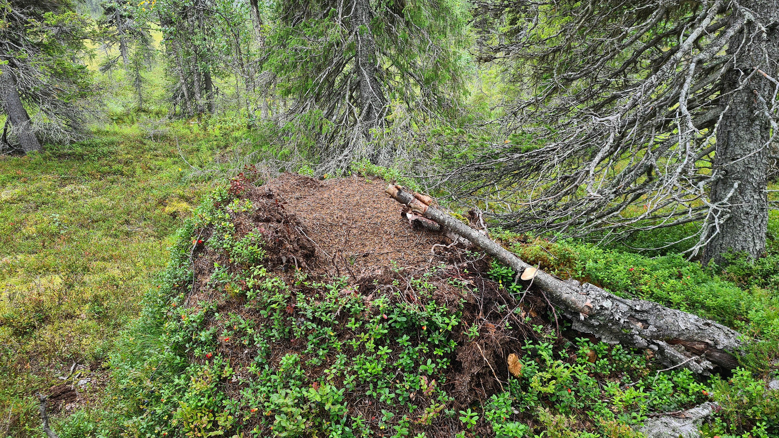 För spår ser jag. Björnspillning stöter jag på i stort sett hela tiden och överallt. En utriven myrstack och uppklösta träd är andra tecken som vittnar om björnens närvaro. Men allt mitt tjatter verkar fungera för ingen björn syns till under turen.