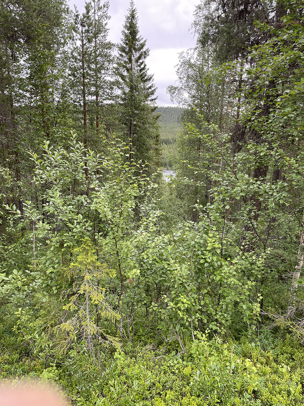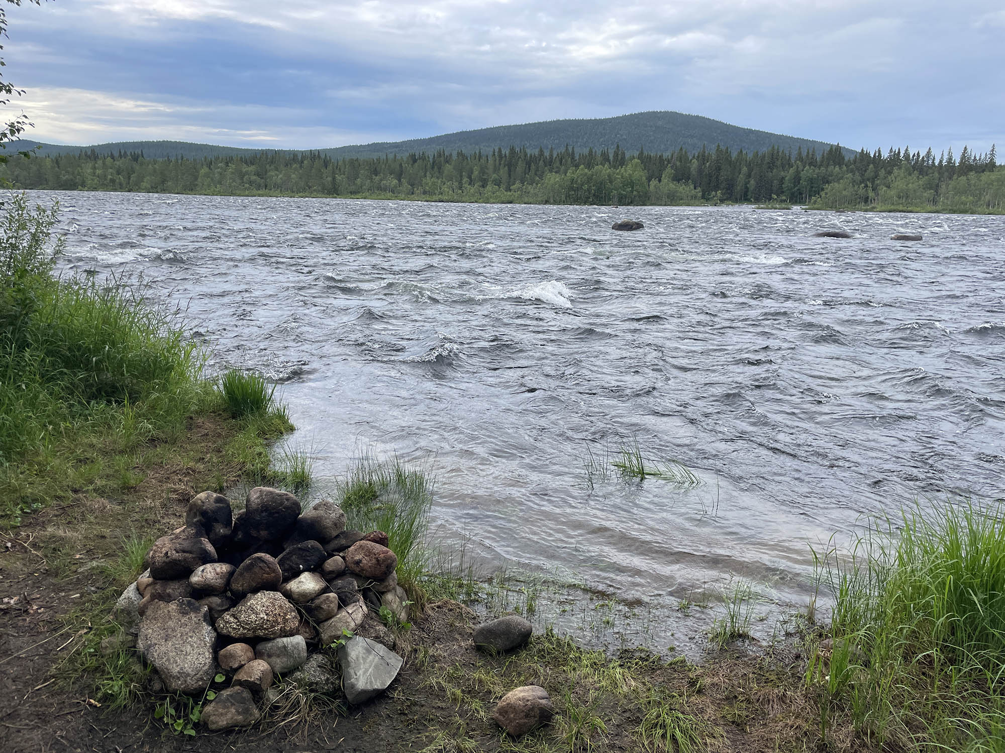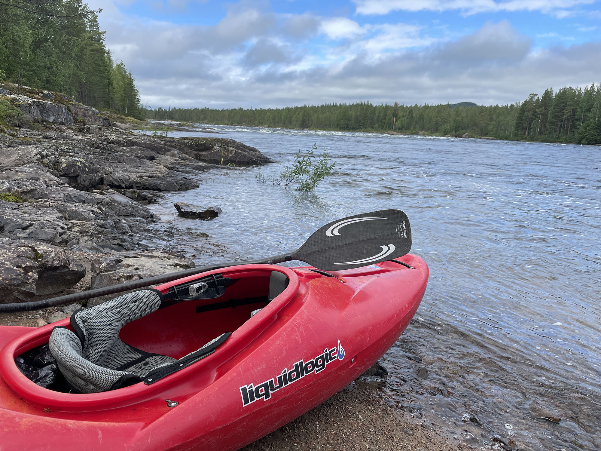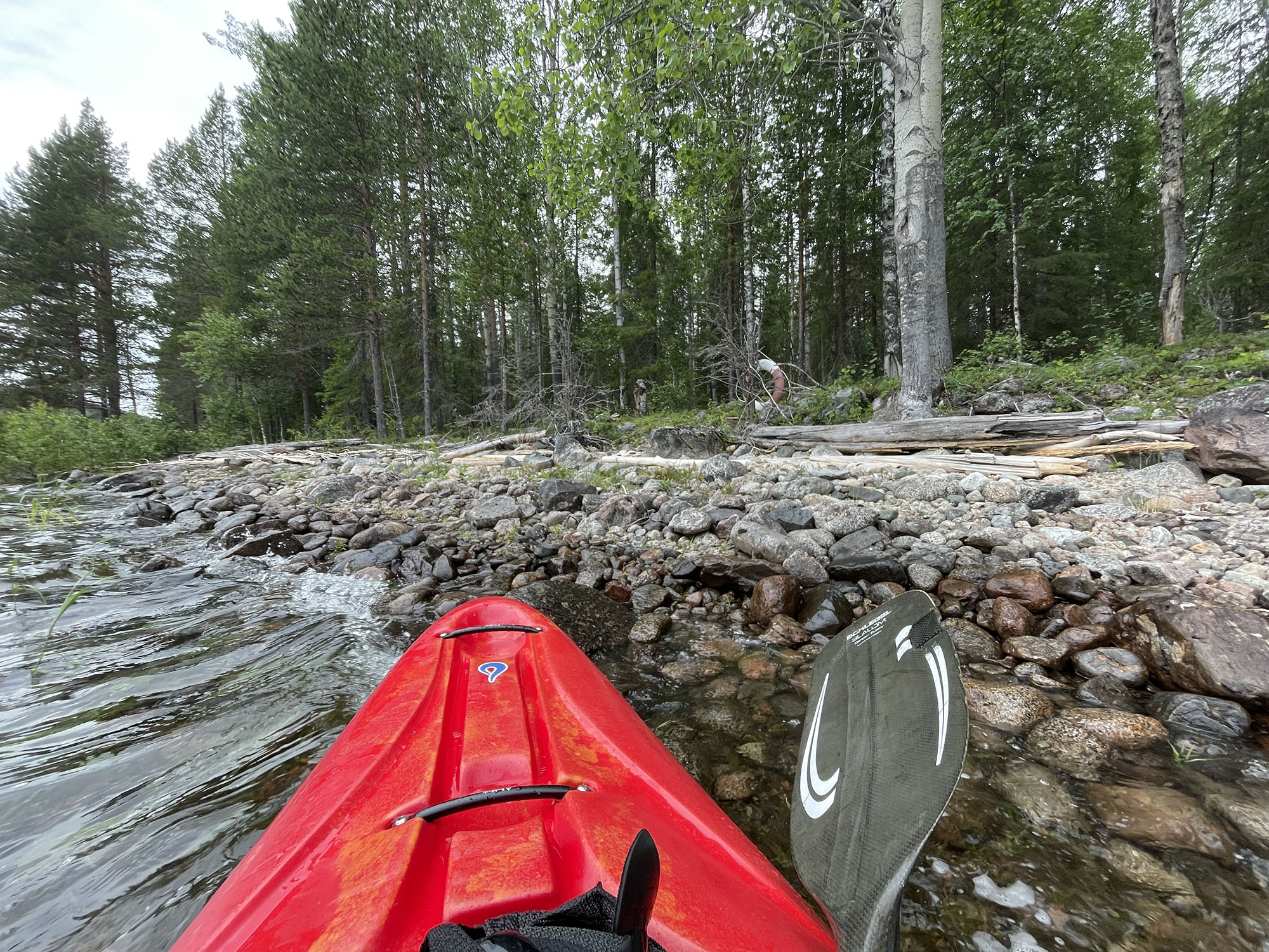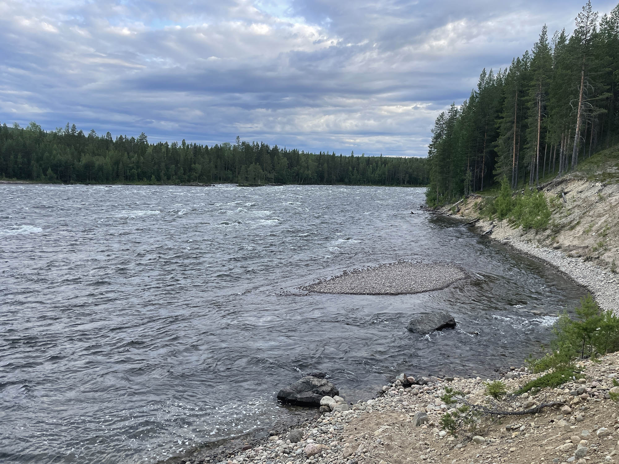 En kortare paddling idag gör att jag startar något senare än gårdagen. Strax före lunch sätter jag mig i kajaken i slutet av Benbryteforsen. Dagens etapp kommer att sluta vid Brudforsen som ligger precis ovanför Storforsen. Det är en viss utmaning att ta in så nära ovanför Storforsen, men jag känner mig trygg i det valet. Jag kommer ligga långt till vänster i sista forsen vilket gör att även om jag går runt och måste simma av någon anledning kommer jag att hinna in till land innan Storforsen.