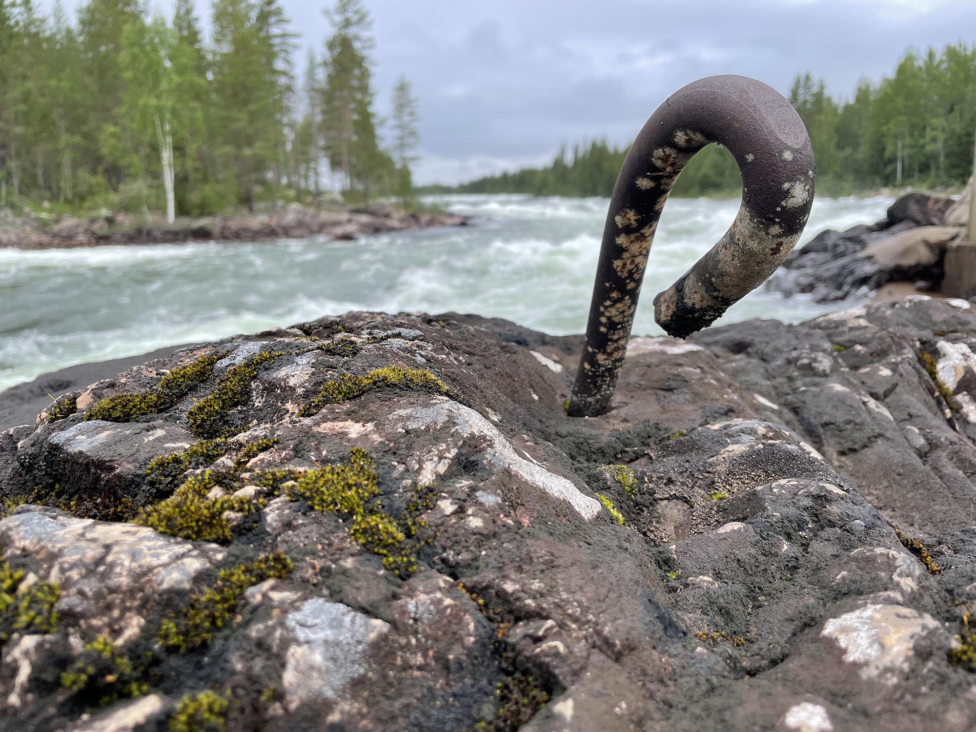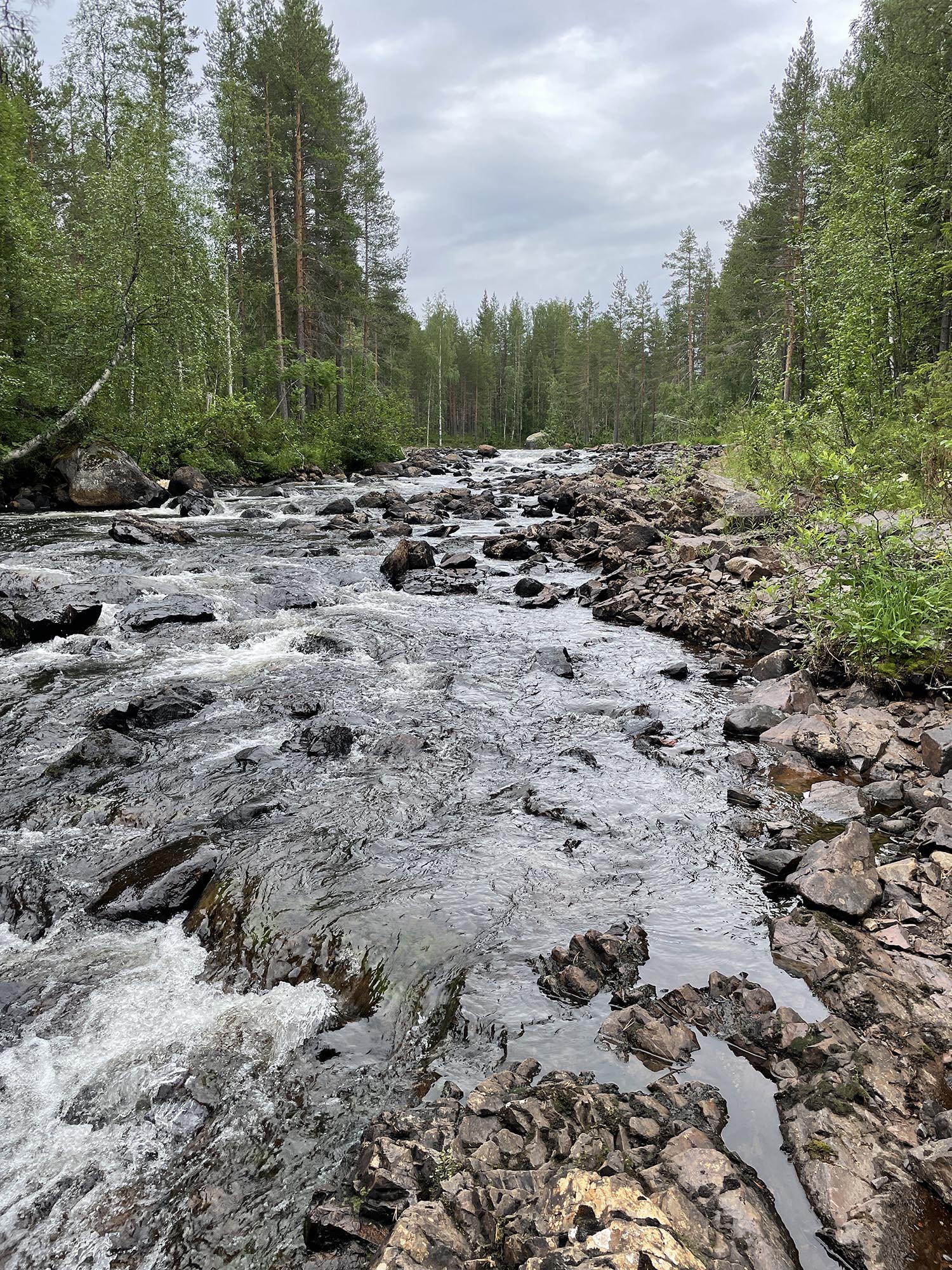 Det är även idag väldigt fina forsar jag tar mig igenom, med bitvis stora vågor och vissa svårigheter men till största delen lagom stora vågor för en fantastisk naturupplevelse. Är det för svår fors hinner man inte se allt omkring forsen utan forsen kräver all uppmärksamhet. Denna sträcka hinner man verkligen njuta av landskapet intill älven. Ungefär mitt på sträckan ligger en lång stenmur som byggdes för flottningen av timmer. Mycket imponerande byggen som håller sig fortfarande trots bristen på underhåll.