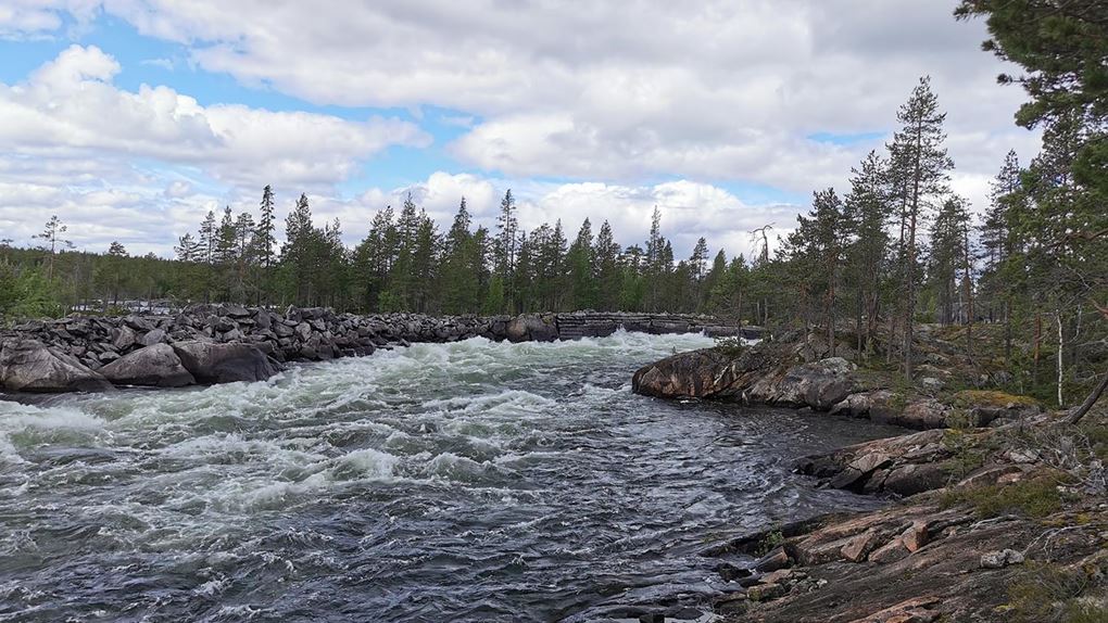 Björnideforsen med spår från flottningstiden.