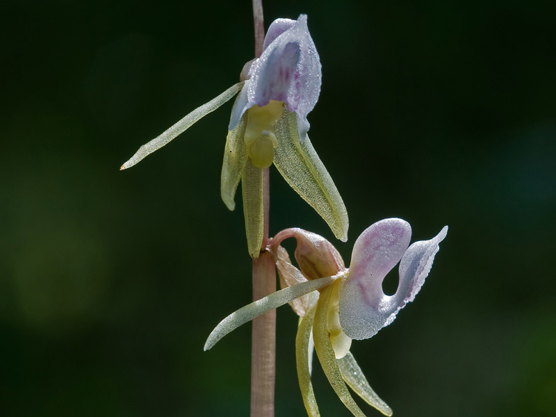 - Skogsfru Epipogium aphyllum är en orkidé som saknar klorofyll och hela växten är därför vit- eller gulaktig.