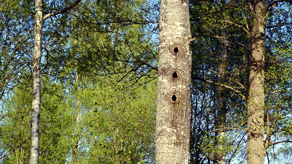 Jättelövträd, här en asp med bohål av spillkråkan.