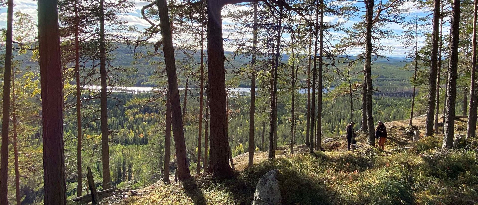 - Käringberget är med sina 506 meter över havet ekoparkens högsta berg. Vid bergets sydtopp finns en stenbänk där du kan vila benen. Härifrån har du en storslagen utsikt över ekoparken och Lögdeälven som slingrar sig fram genom älvdalen långt där nere. På berget växer några av områdets äldsta tallar.