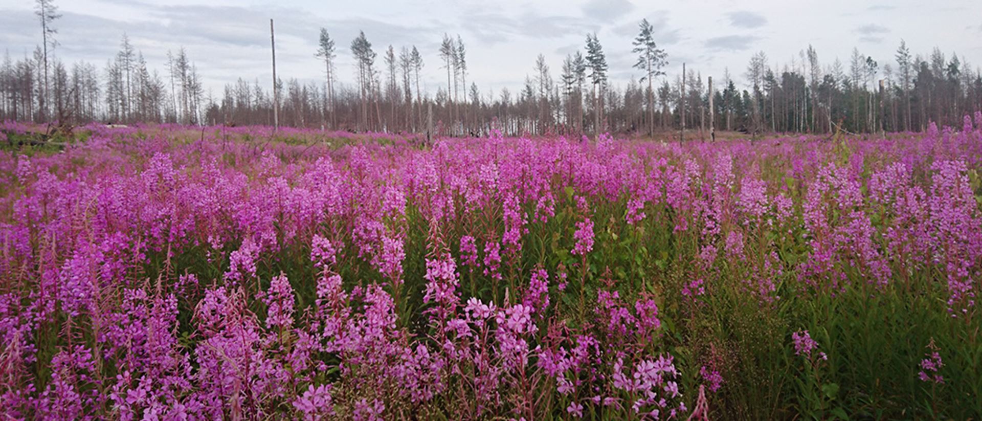 Direkt efter brand dominerar brännmossan och björnmossan bland mossartarterna. Tittar man lite mer noga så finns även lungmossan i rikliga mängder. Mest känd av de brandgynnade växterna är svedjenäva och brandnäva. Svedjenävan blommade i tusental under 2015. Dess frön kan ligga i över hundra år i väntan på brand. Fröna gror vid en marktemperatur på cirka 45-50 grader och tål upp till 100 grader. Med vinden kommer även nya frön. Mjölkörten (rallarros), med sina lättspridda frön, skapar rosa fält som vajar i vinden och erbjuder klövviltet en riklig foderkälla.