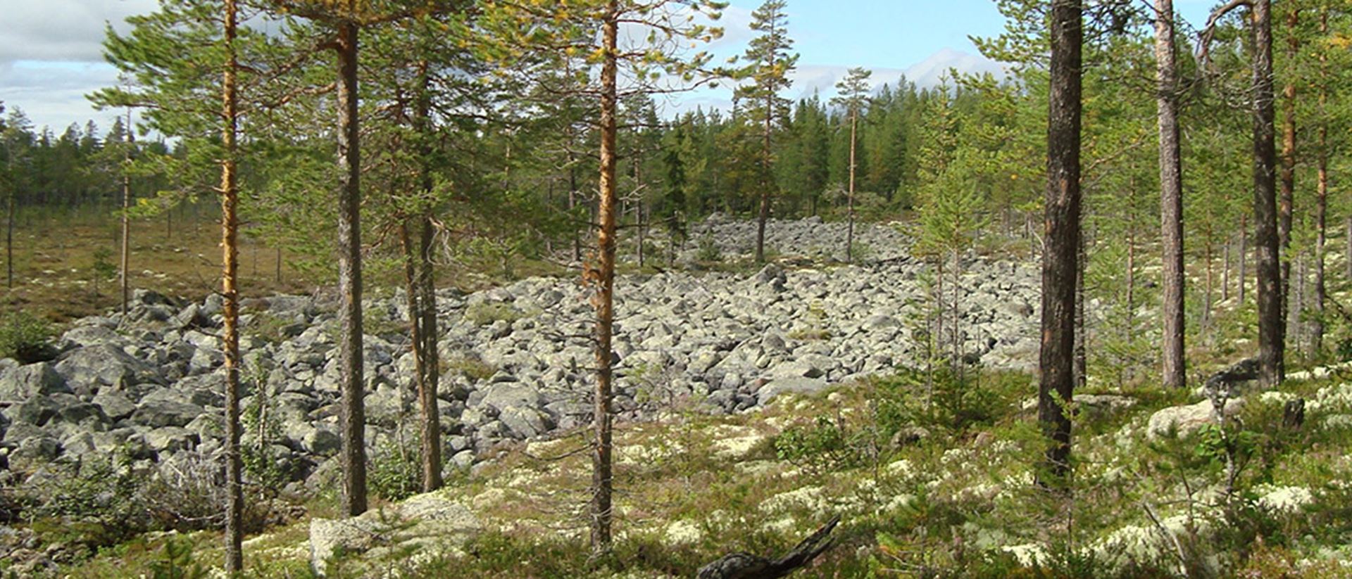 Största delen av ekoparken är karg och stenig, men här och där byts den magra tallskogen mot frodig granskog. Det beror på stråk av grönsten och kalk i berggrunden, som gör marken bördig. Här växer tjocka mossmattor med orkidéer som skogsfru och guckusko, och sällsynta svampar som violettrandad spindling och svartfjällig musseron.